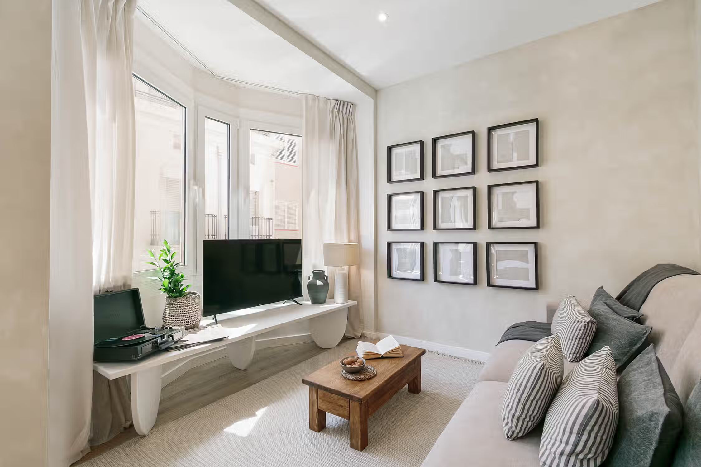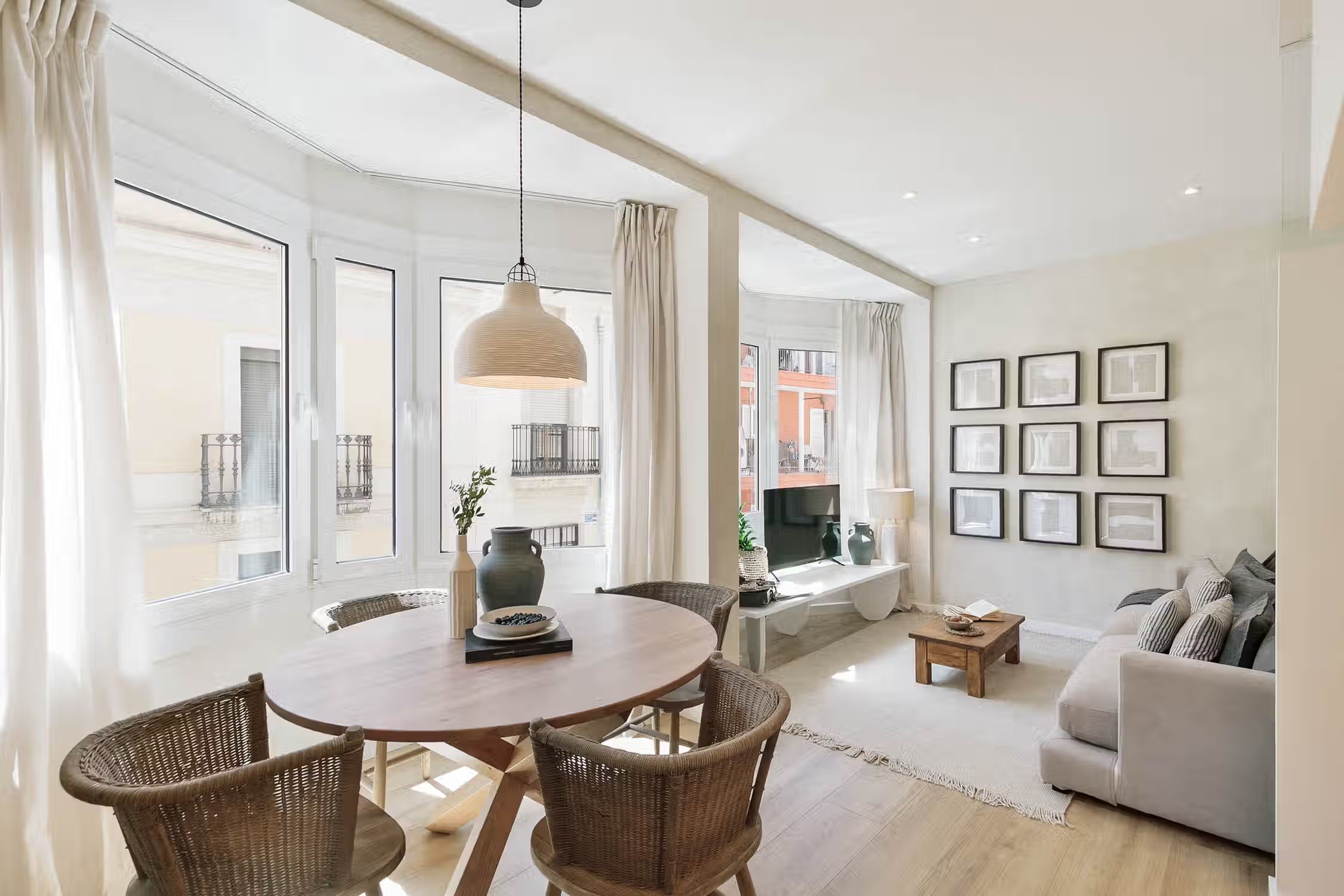 Elevate your stay in Barcelona with this two-bedroom furnished rental in the heart of Sant Gervasi. The Conca apartment belongs to our special Amalfi Coast line offering you rocky coastal neutrals, light wooden accents, and artisan craft touches designs. This home comes with a fully equipped kitchen, beddings and towels, and a work area perfect for digital nomads. What more could you ask for! Our in-house team of interior designers placed a lot of thought into this furnished rental in Barcelona. Whether you're lounging on a custom Ukio-fabricated couch or spending time in the kitchen, you'll never miss that 'home' feeling. This apartment also comes with HD television, high-speed internet, fresh linens and towels, and a Crosley vinyl and Bluetooth speaker. There is so much to love in this Sant Gervasi apartment