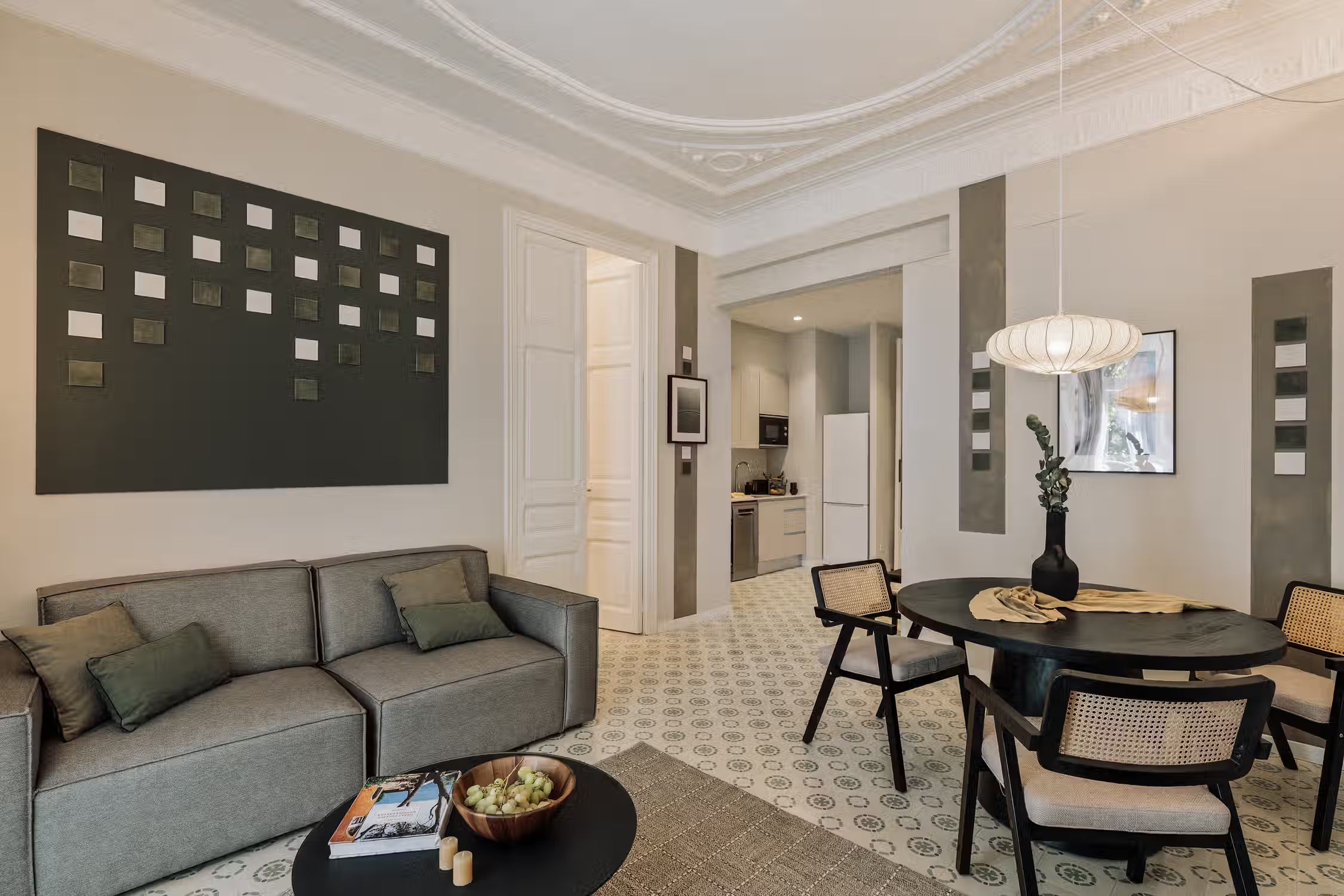 Spectacular apartment in Gran de Gràcia street , with 2 bedrooms and 2 bathrooms. The kitchen is equipped with state-of-the-art appliances and kitchenware. The beds are equipped with soft bedding, ideal for a good night's rest. The apartment has 2 bathrooms equipped with a full shower and towels. In addition, the apartment is equipped with high-speed WiFi and SmartTV. The apartment has a washing machine, dishwasher and air conditioning for your maximum comfort. *For comfort, this apartment comes equipped with air conditioning in the living room and bedrooms