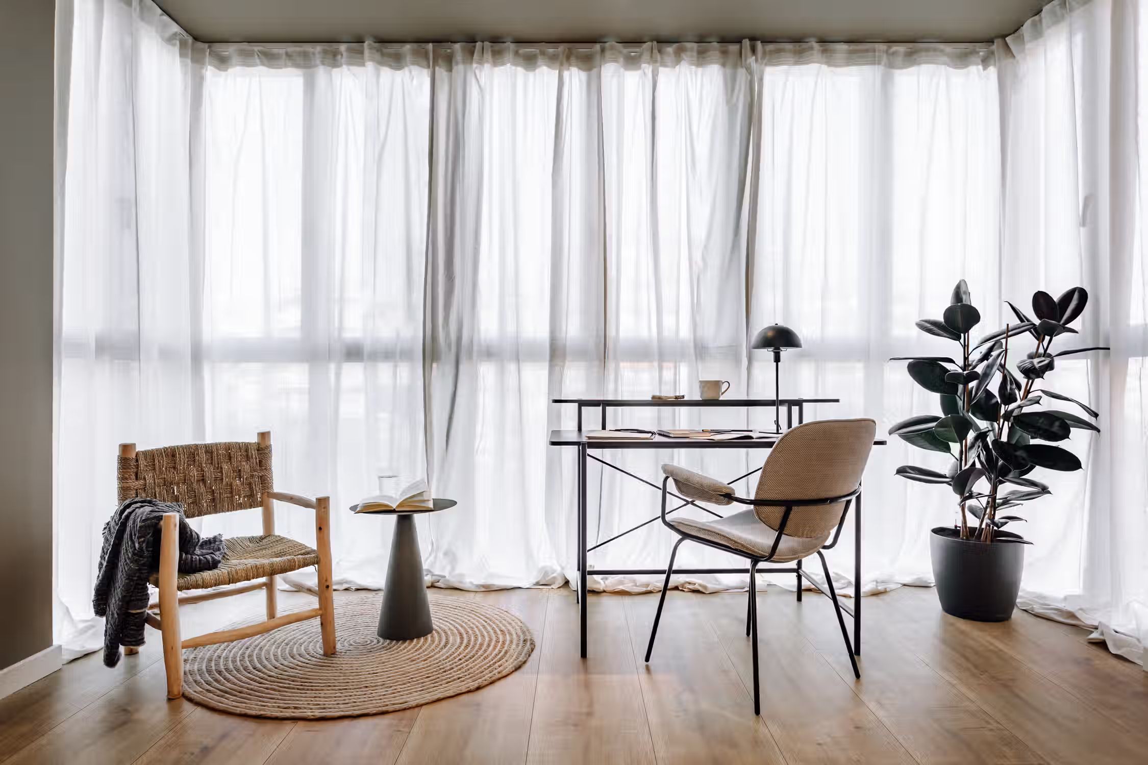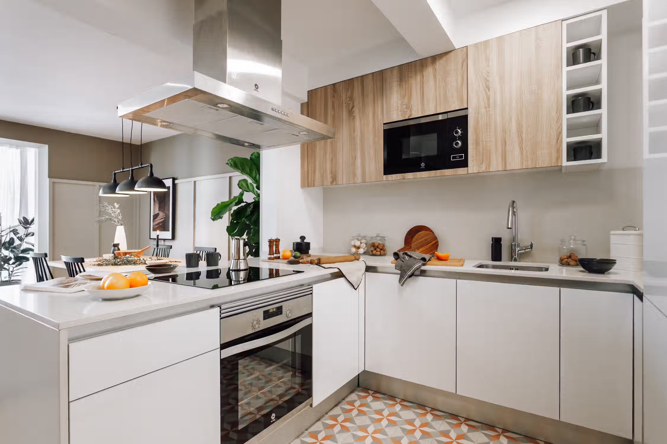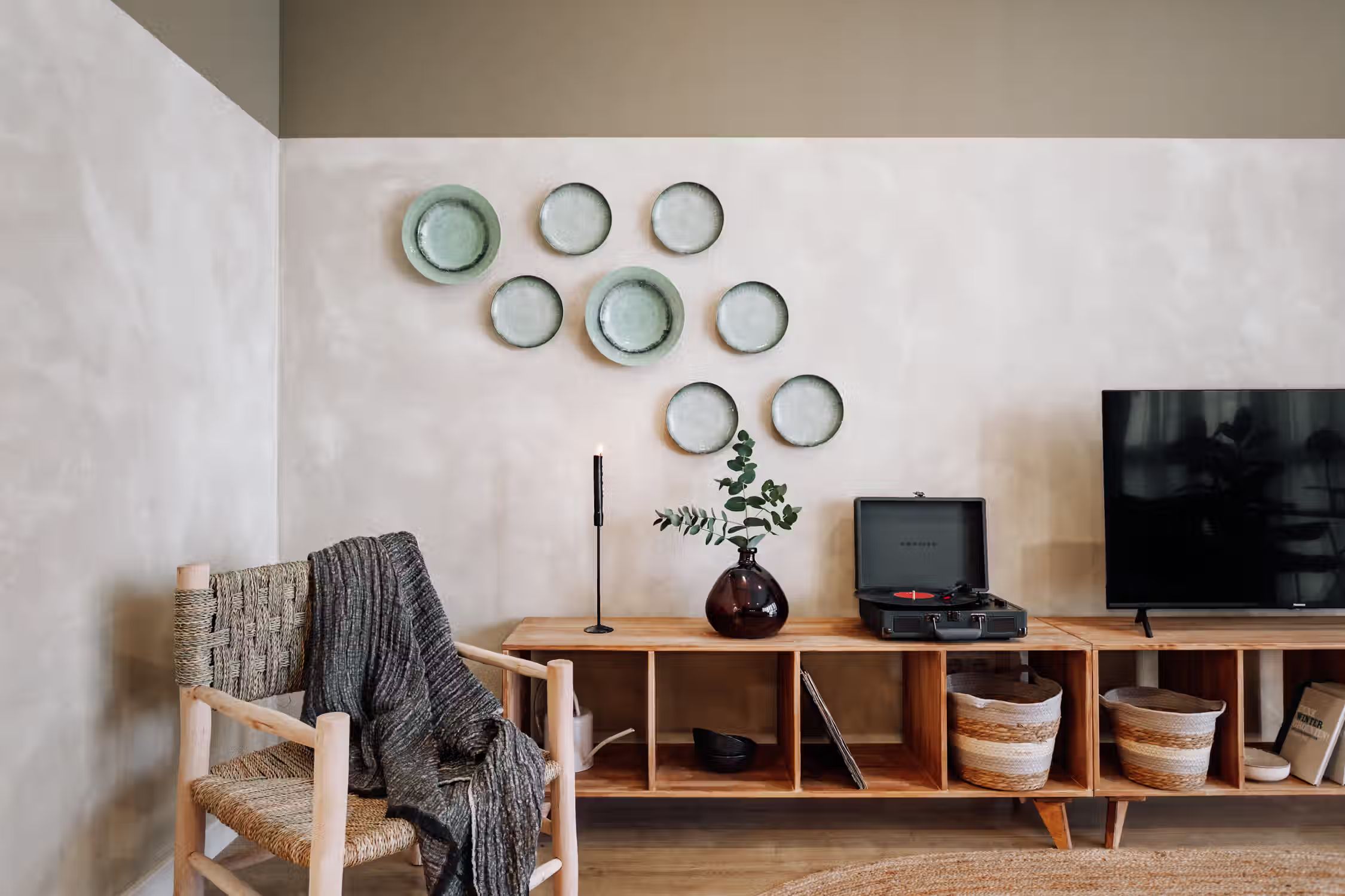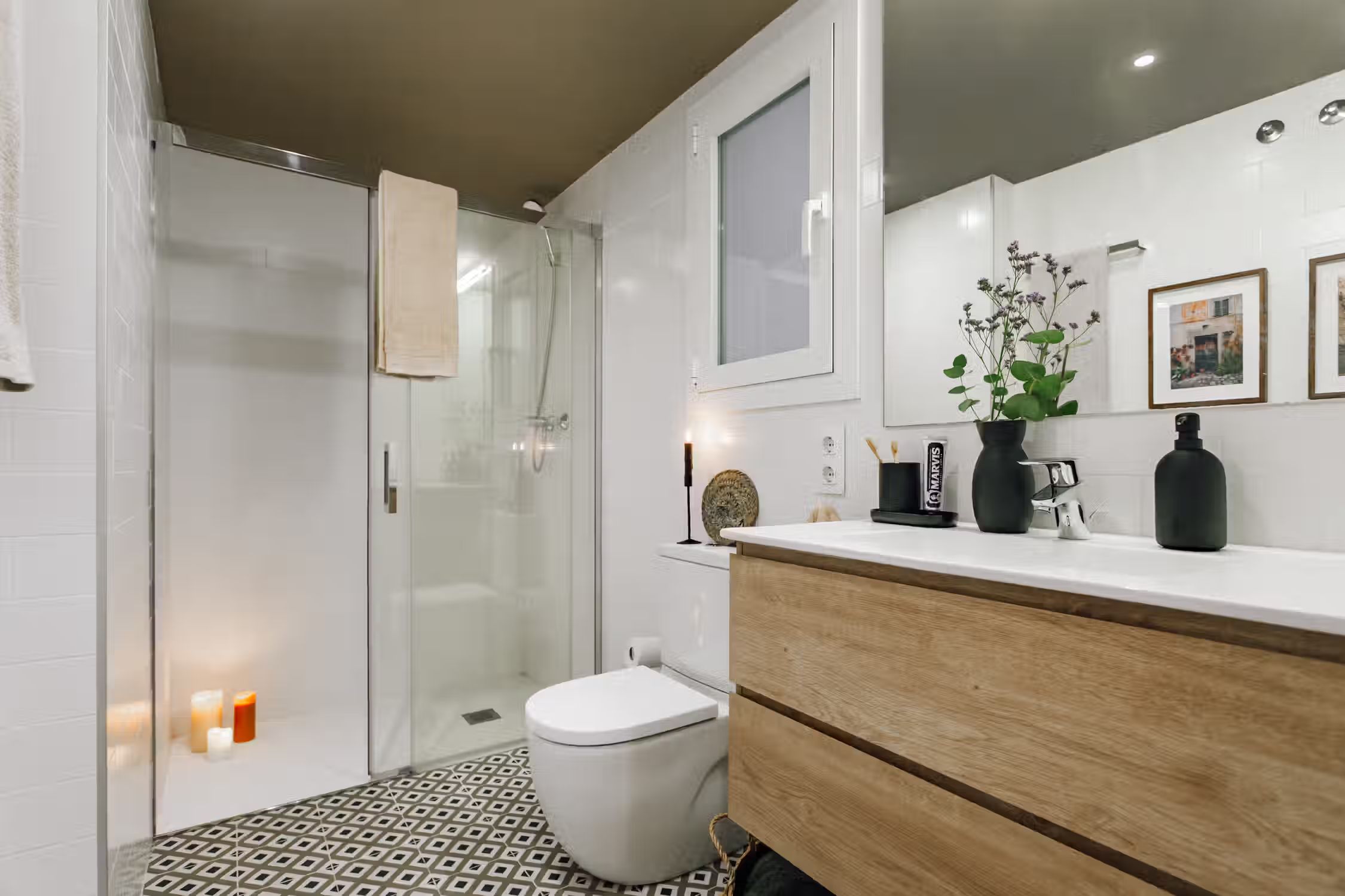 Elevate your stay in Barcelona with this two-bedroom furnished rental in the heart of Sant Antoni. The Loja apartment belongs to our special grassland line offering you grassy greens, burnt orange contrasts, and decorative plate designs. This home comes with a fully equipped kitchen, beddings and towels, and a work area perfect for digital nomads. What more could you ask for! Our in-house team of interior designers placed a lot of thought into this furnished rental in Barcelona. Whether you're lounging on a custom Ukio-fabricated couch or spending time in the kitchen, you'll never miss that 'home' feeling. This apartment also comes with HD television, high-speed internet, fresh linens and towels, and a Crosley vinyl and Bluetooth speaker. There is so much to love in this Sant Antoni apartment