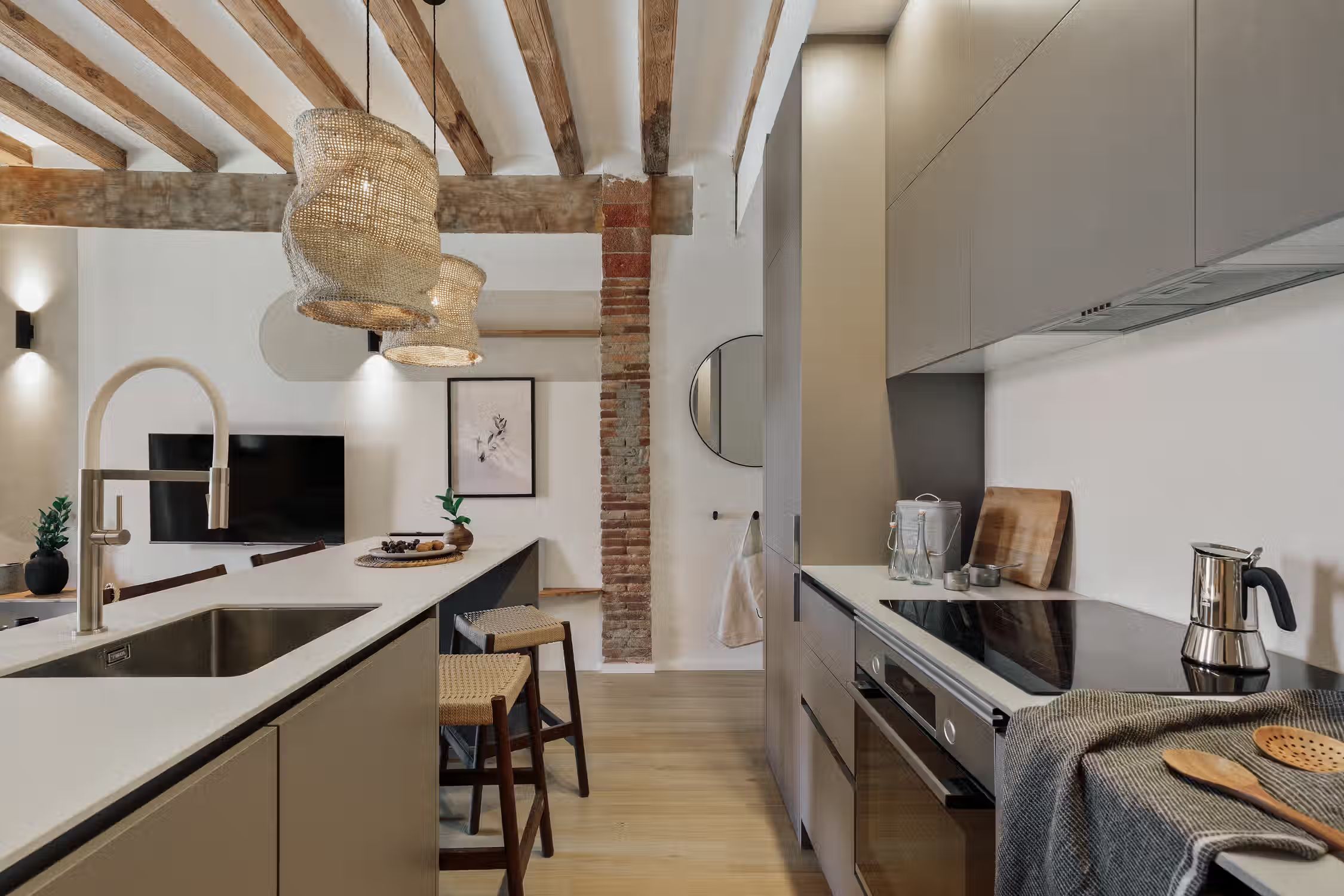 Spectacular apartment in Doctor Trueta street, with 1 bedroom and 1 bathroom. The kitchen is equipped with state-of-the-art appliances and kitchenware. The beds are equipped with soft bedding, ideal for a good night's rest. The apartment has 1 bathroom equipped with a full shower and towels. In addition, the apartment is equipped with high-speed WiFi and SmartTV. The apartment has a washing machine and air conditioning for your maximum comfort. *The building offers a shared pool for guests to use. *This apartment comes equipped with a ducted air system in all rooms for absolute comfort