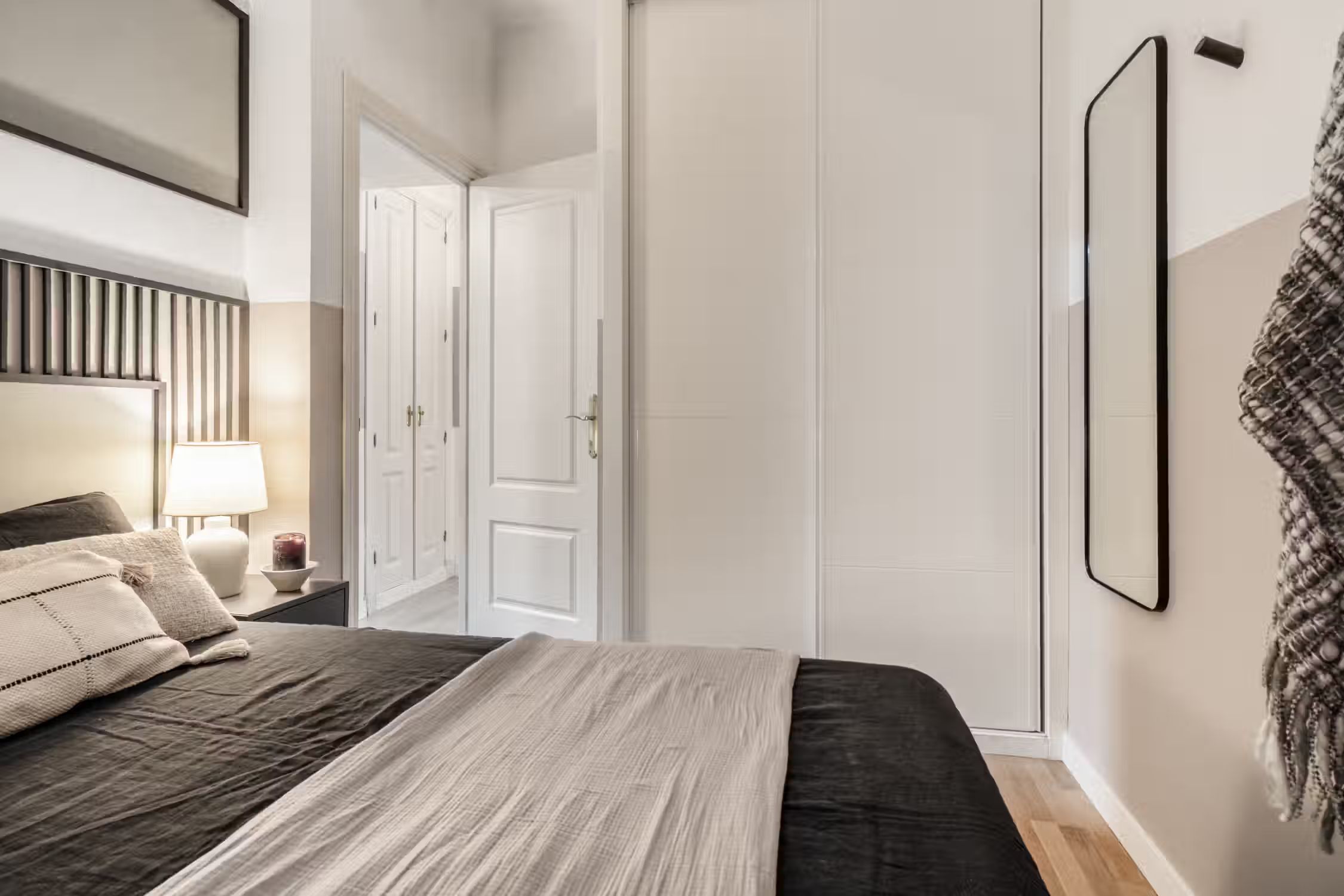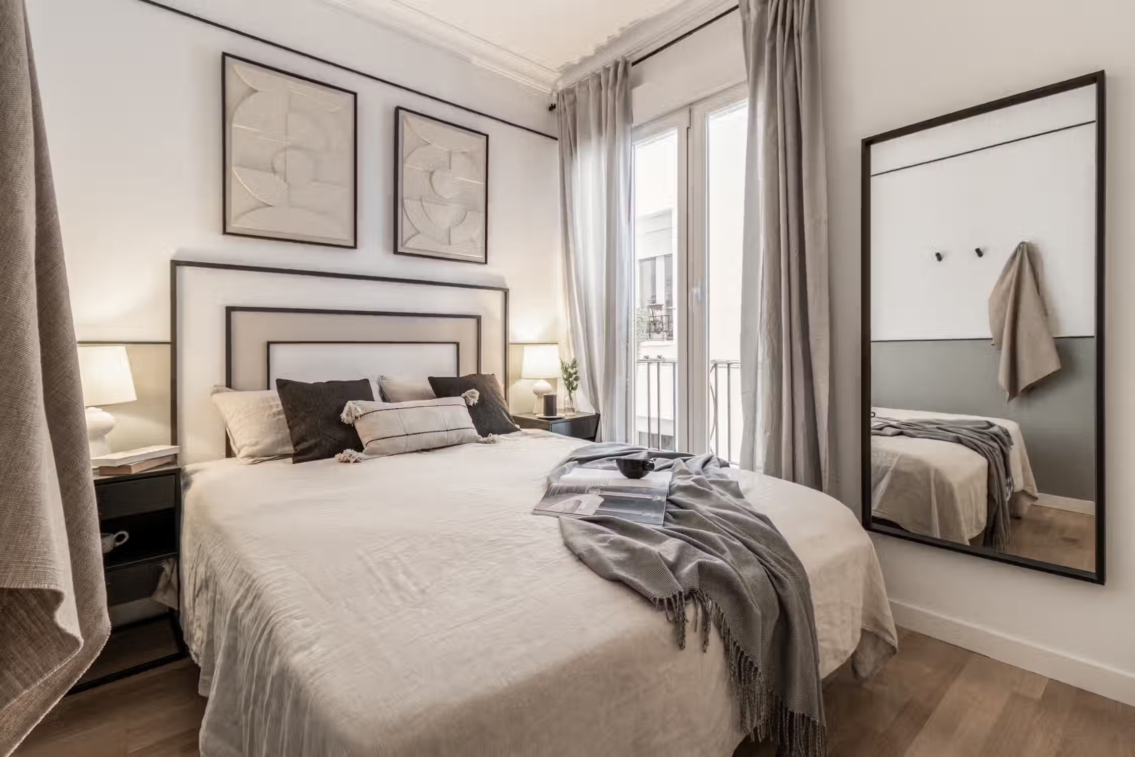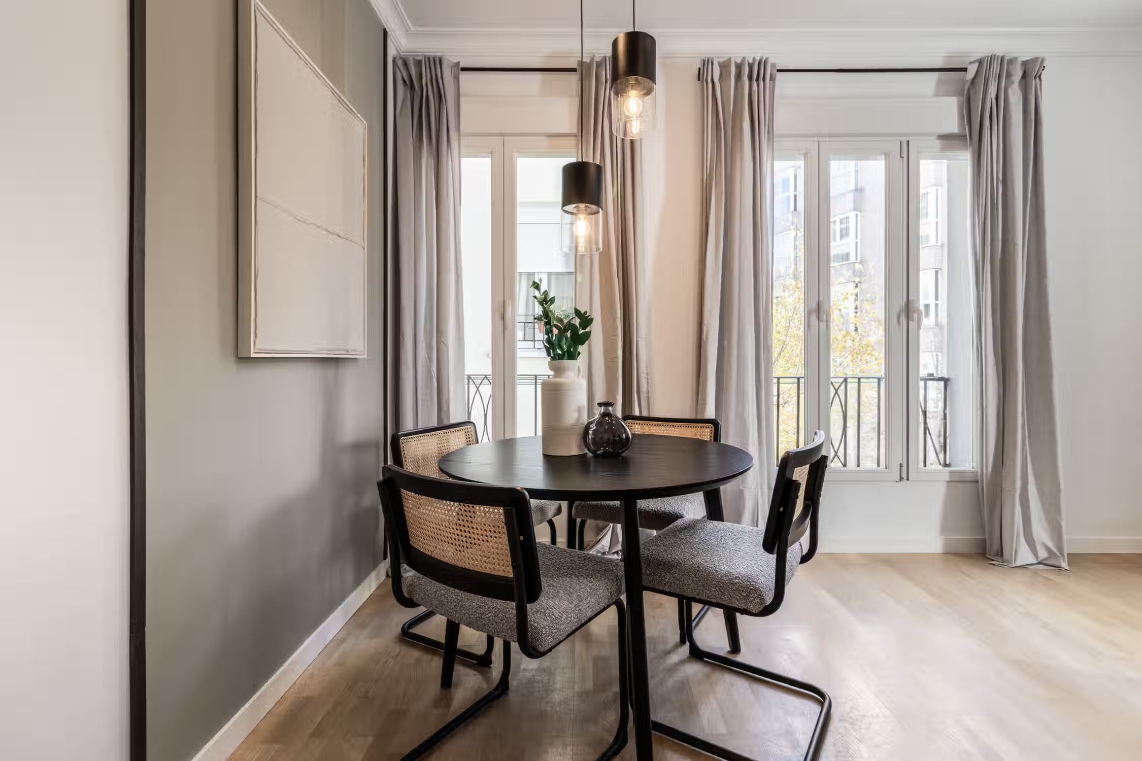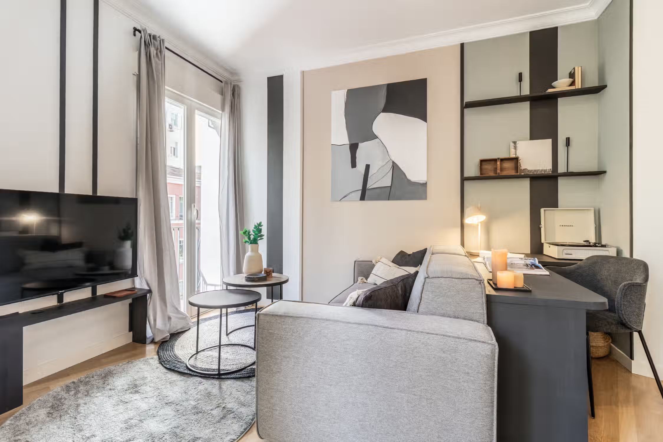 Stay in this spectacular two-bedroom furnished apartment in the Ríos Rosas neighborhood. The kitchen is equipped with state-of-the-art appliances and the beds are fitted with soft linens, ideal for a good night's rest. For work travelers and digital nomads, Meseta has a work designated area so you remain productive at home. Its central location makes it the ideal base for your life in Madrid. Custom designer furniture, an HDTV, and a Crosley Bluetooth speaker are just some of the amenities you’ll find inside this two-bedroom apartment. To relax, your beds are set with fresh linens and comfy pillow sets, and our custom Ukio-made sofas are perfect for lounging around. For anything you need, our Guest Experiences team is around to assist you. Ideally located in the Ríos Rosas neighborhood of Madrid, you'll simply love living in this furnished rental