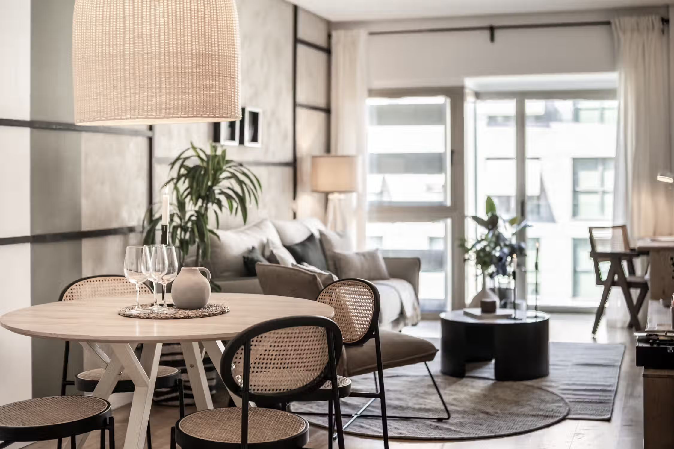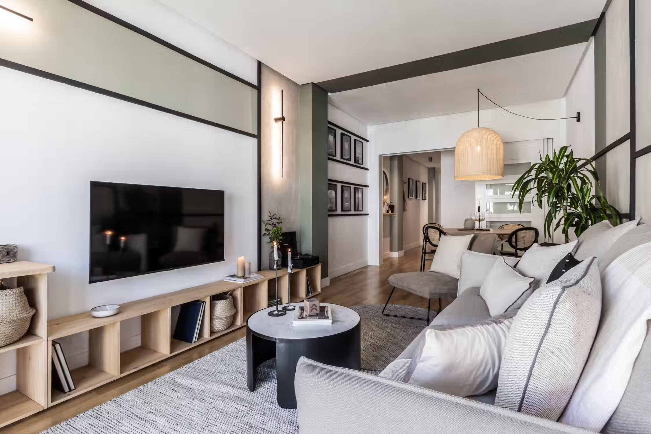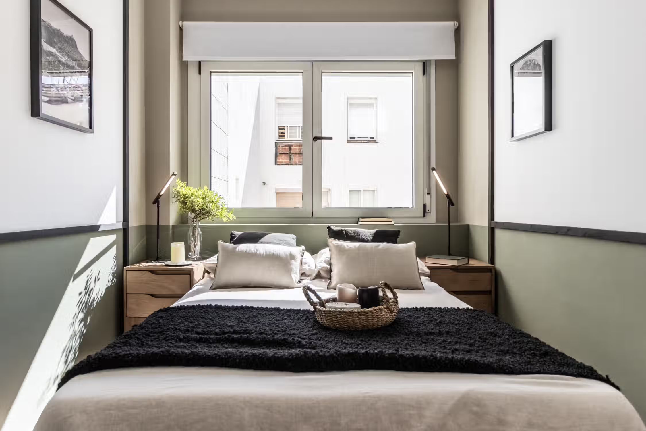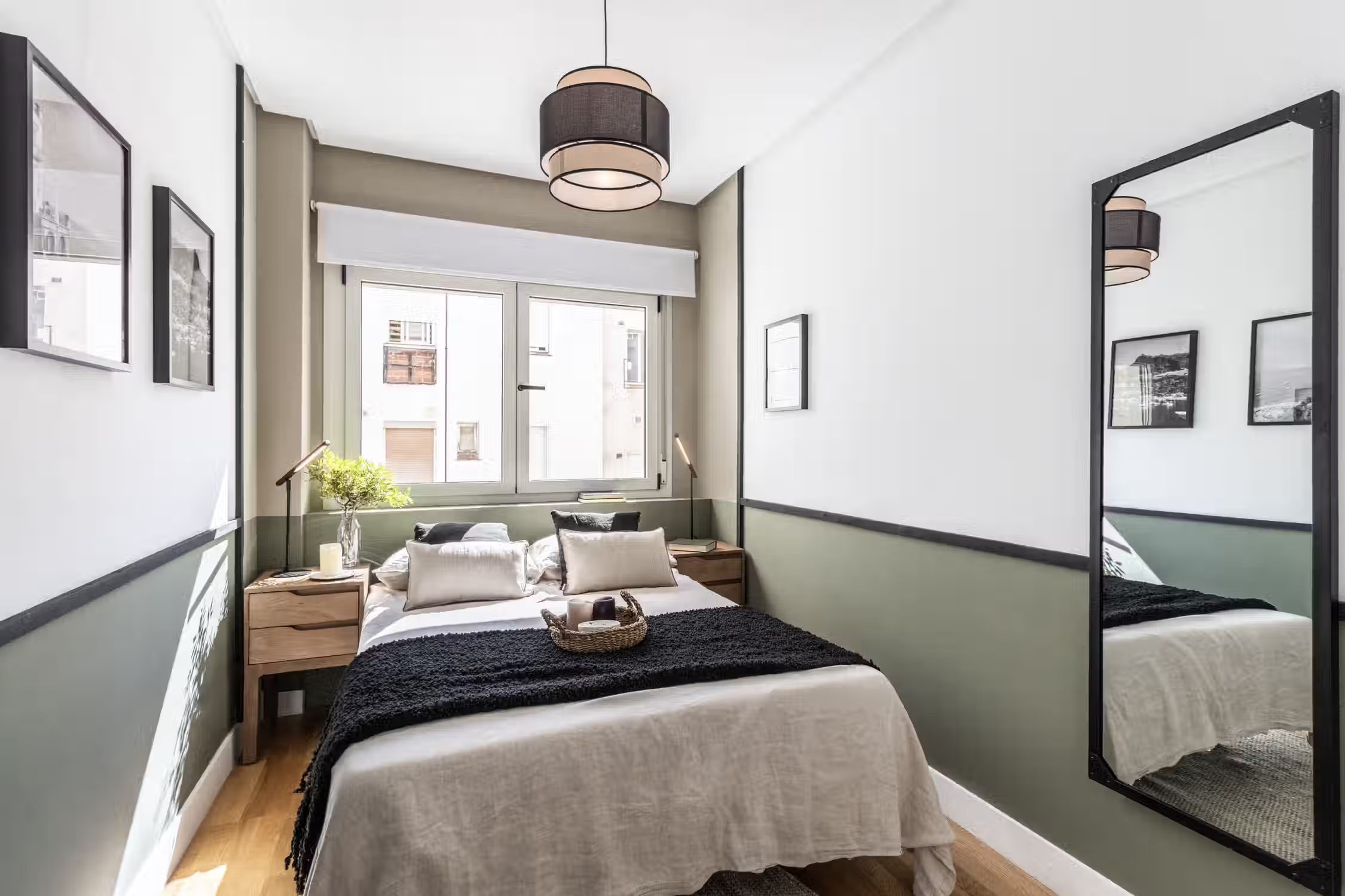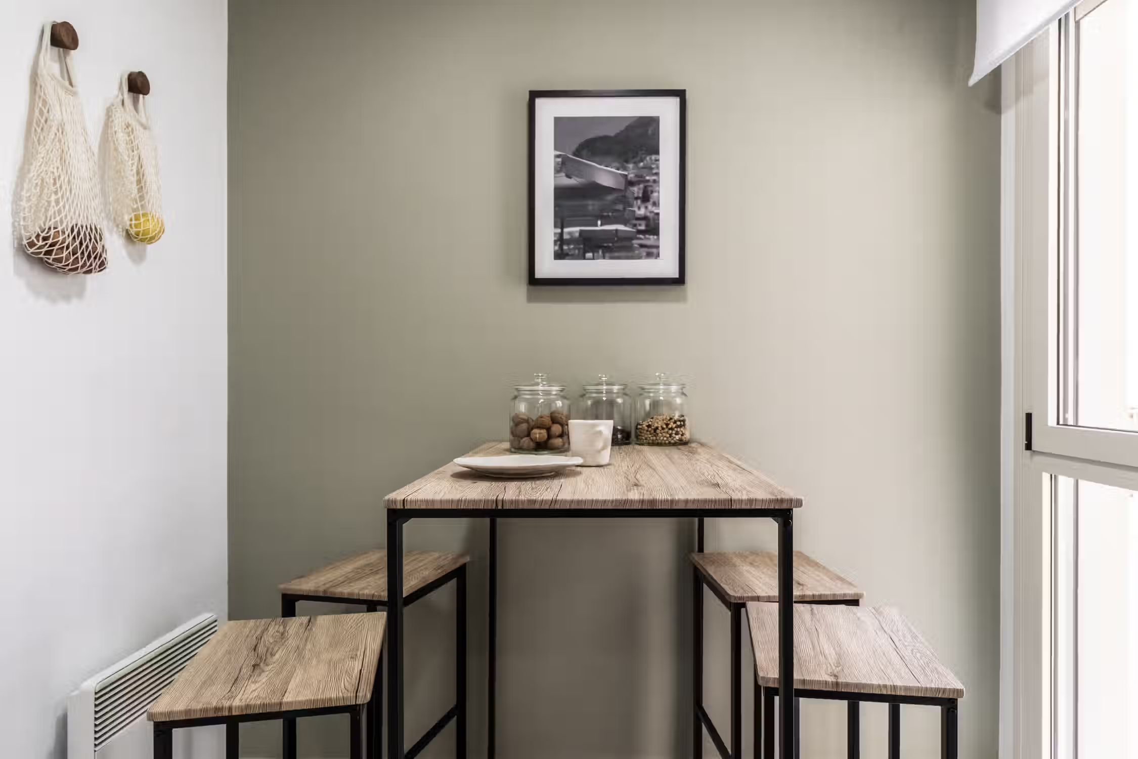 Welcome to Nocera, a charming 2-bedroom apartment nestled in the vibrant Arapiles neighborhood. This area gives a taste of the traditional life in Madrid, perfect for soaking up the local culture and flavors. With its stylish design and comfortable amenities, Nocera offers an inviting retreat for your stay in this dynamic city. Spanning 95 square meters, Nocera is designed to provide you with a seamless blend of modern convenience and aesthetic appeal. As you enter, you'll be greeted by an open and spacious living room that boasts a full entertainment system, perfect for relaxing after a day of exploration. A dedicated workstation in the living area caters to any work or study needs you may have during your stay. The dining table is thoughtfully integrated into the living space, offering a cozy setting for enjoying meals or planning your day's adventures. The fully furnished kitchen, complete with all necessary appliances, includes a charming breakfast nook where you can start your mornings with a cup of coffee and a delightful view. The apartment offers two beautifully appointed bedrooms, each featuring a comfortable queen-size bed for a restful night's sleep. The master bedroom comes with an ensuite bathroom, providing added convenience and privacy, and a dedicated workstation. The ensuite bathroom is equipped with a bathtub, offering a relaxing escape after a day of exploration. The second detached bathroom is chic and functional in design. The beach design theme throughout the apartment infuses a sense of tranquility and relaxation into the ambiance, creating a soothing backdrop for your stay. Air conditioning is provided to ensure your comfort, allowing you to maintain an ideal temperature throughout your time in Madrid. Fully furnished, this apartment comes with everything you need, including bedding and linens