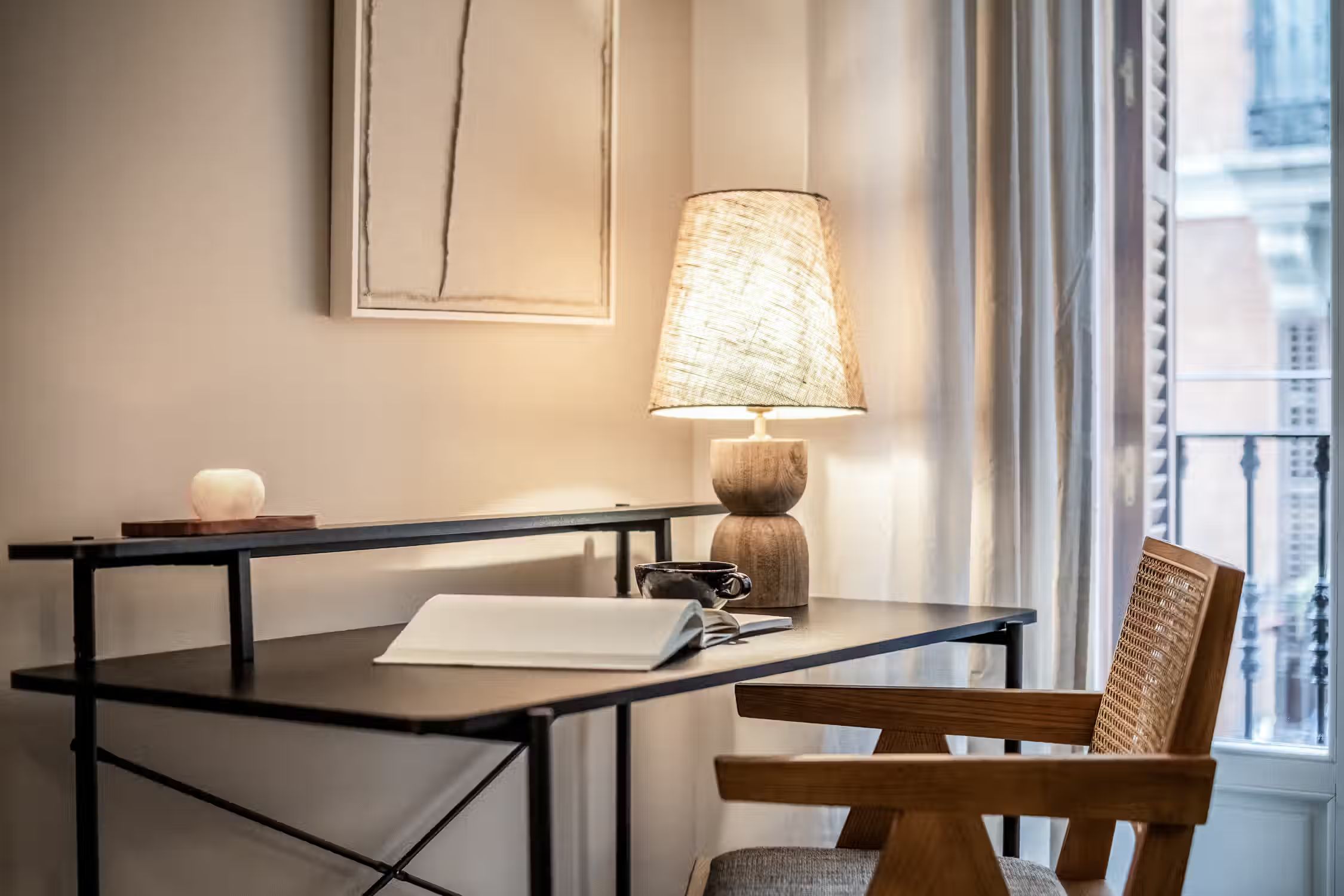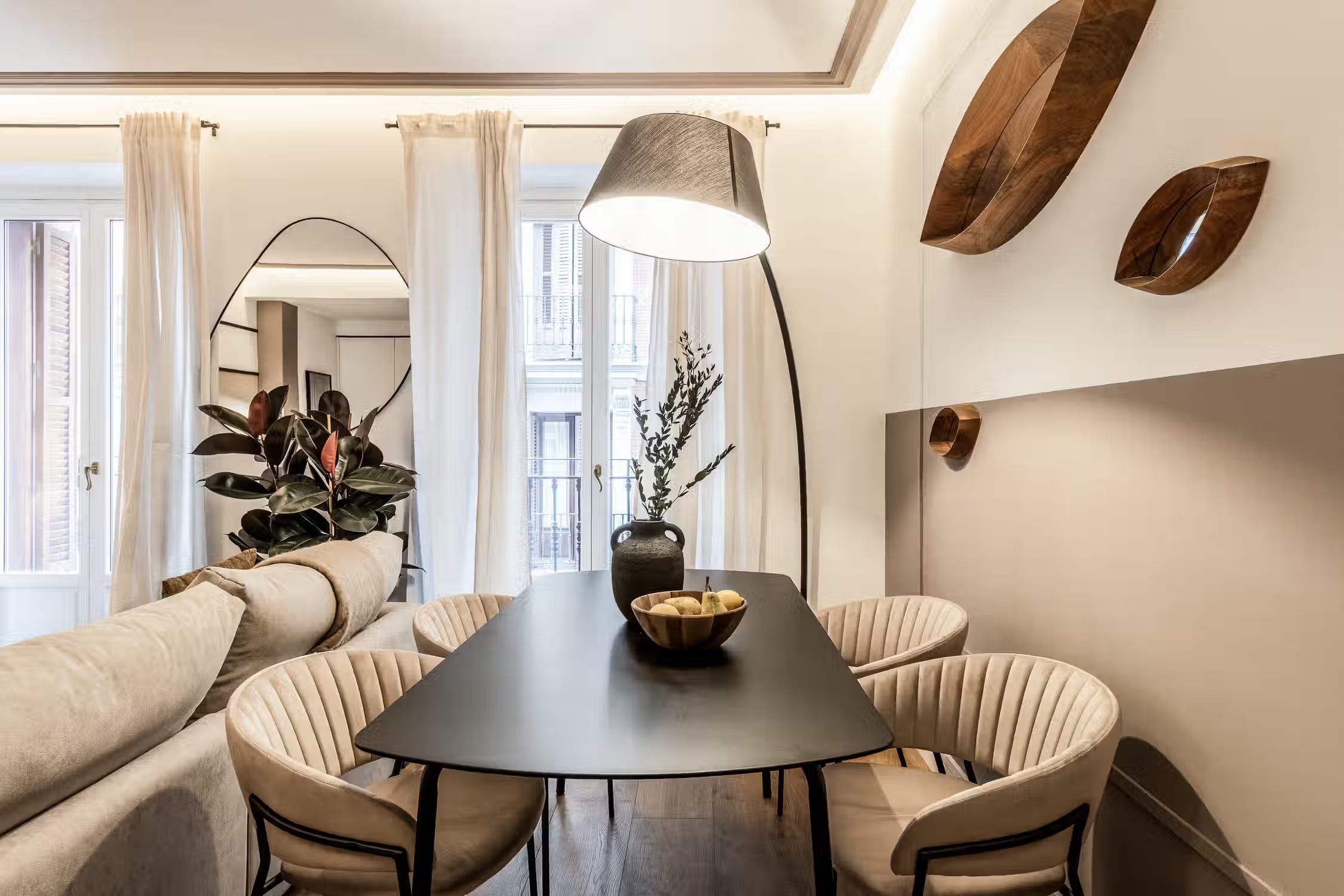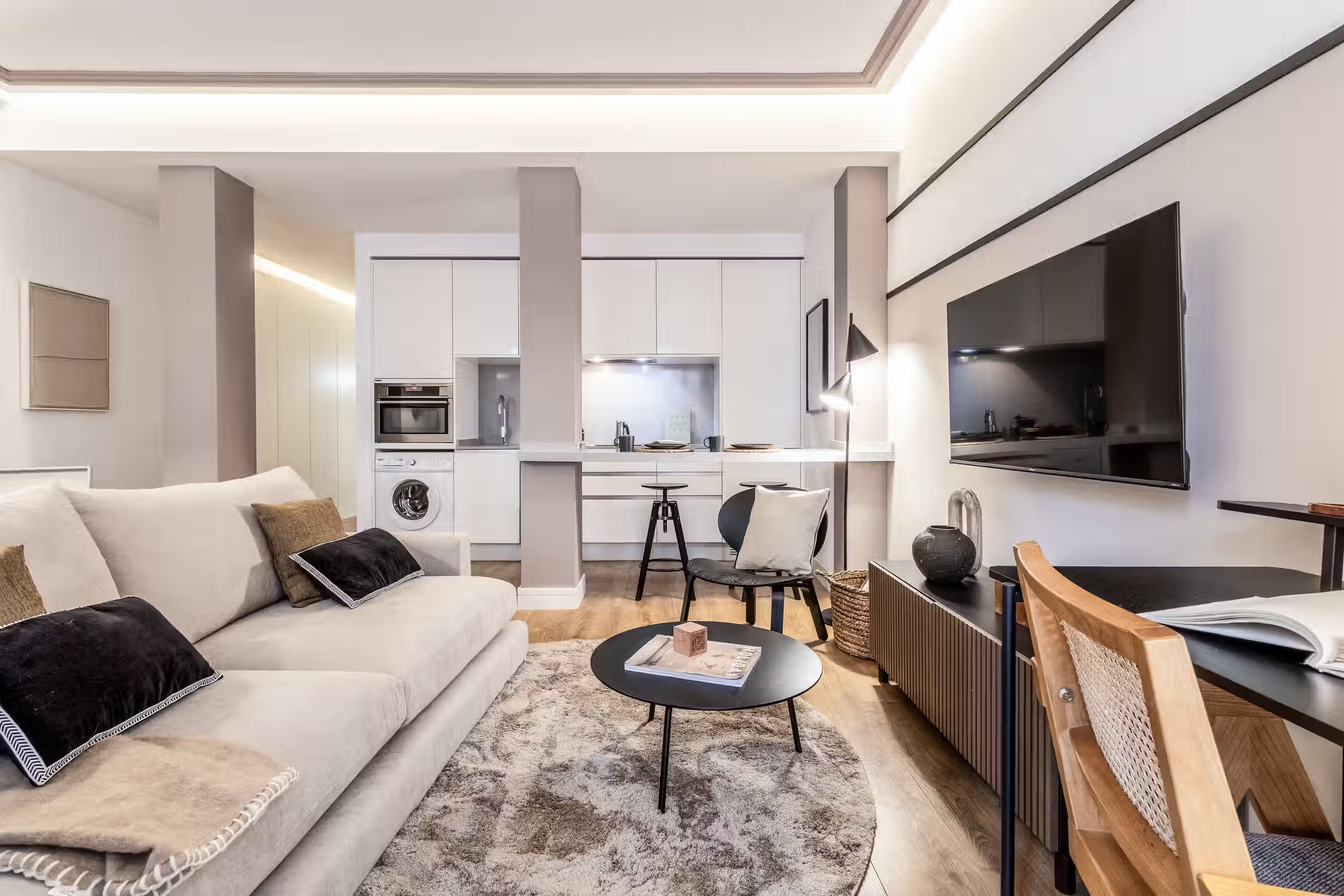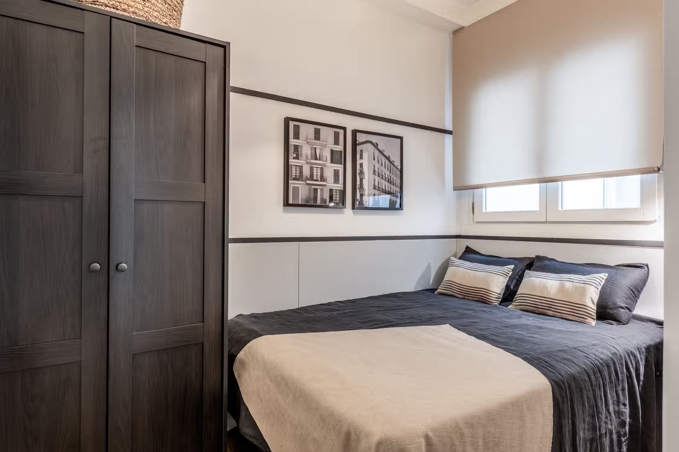 Welcome to Sauco, a stylish 65-square-meter haven situated in the heart of Centro, surrounded by scenic architecture and museums, offering you a delightful fusion of culture and comfort. After a day of taking in the sites of Madrid, come home to Sauco for absolute indulgence. This thoughtfully designed residence features two bedrooms, each graced with queen-size beds, ensuring a peaceful and rejuvenating night's sleep. The single bathroom, with its contemporary design, complements the overall aesthetic of the apartment. Sauco boasts an open-plan living room and kitchen, creating a seamless flow between spaces. The chic design of the apartment is characterized by a neutral color palette, while pops of green from strategically placed plants add a touch of freshness and vibrancy. The living room is a versatile area, featuring an entertainment system for relaxation, a dedicated workstation for productivity, and a dining table for shared meals. The fully furnished kitchen, complete with countertop seating, is a culinary haven where you can create delightful dishes or enjoy a quick bite. Ducted air conditioning in all rooms and individual floor heating ensure that the climate is always just right, adding an extra layer of comfort to your living experience. A doorman provides both security and convenience, making your stay in Sauco even more enjoyable. Fully furnished, this apartment comes with everything you need, including bedding and linen
