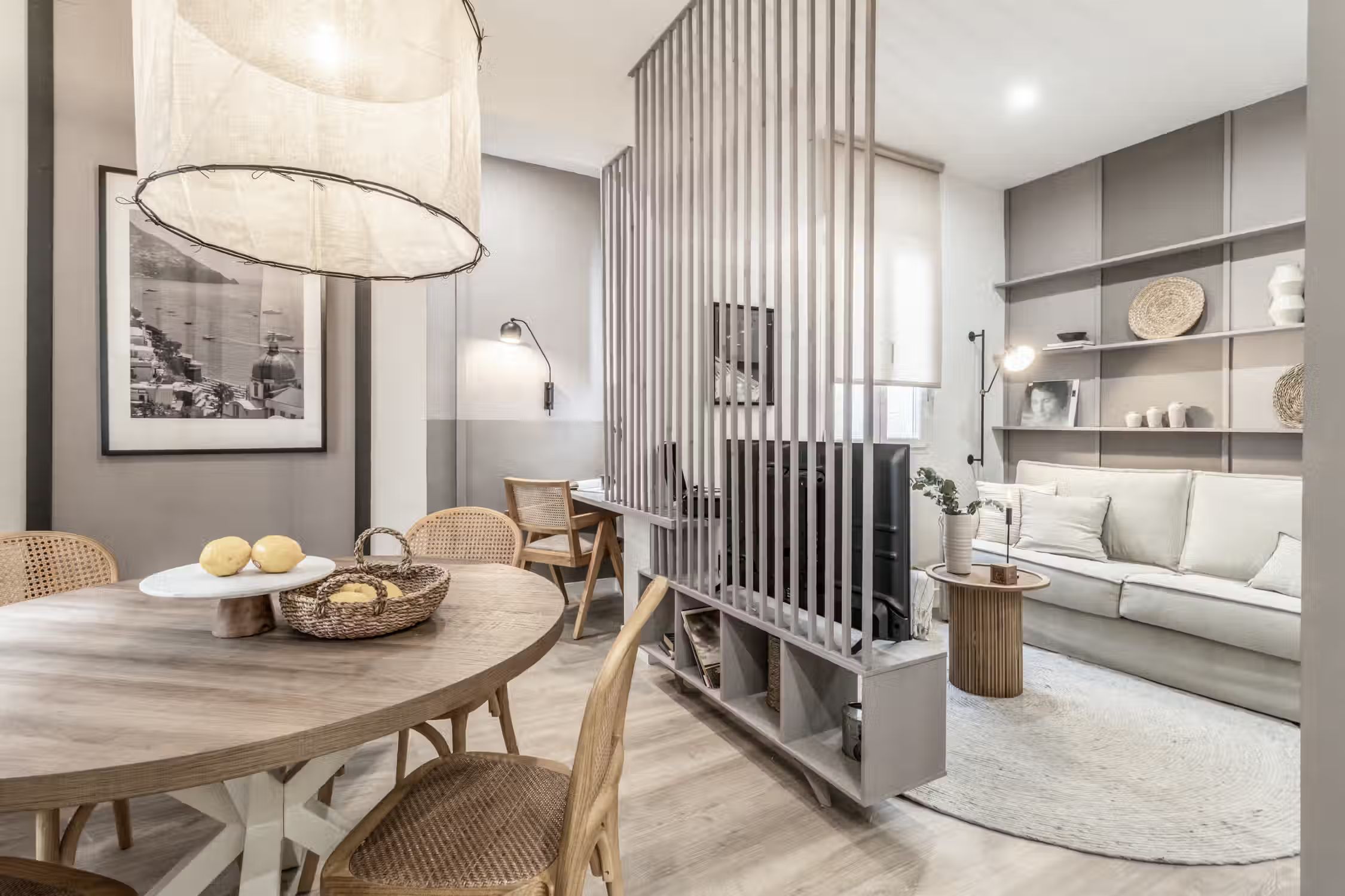 Discover Oro, a delightful retreat nestled in Castellana, offering a stylish beach-themed design for an invigorating stay. Upscale, residential, and business hub, if this sounds exciting to you, then this neighborhood is the place for you. Spanning 56 square meters, Oro provides a cozy and inviting ambiance, perfect for your urban getaway. Unwind in the bedroom, featuring a comfortable queen-size bed, ensuring a restful night's sleep. For additional guests, the living room contains a sofa bed for added convenience. The elegantly designed bathroom includes a convenient walk-in shower, providing a refreshing and luxurious bathing experience. The living room is a haven of comfort and convenience, complete with an entertainment system for your leisure, an adjacent dining table for shared meals, and a dedicated workstation for your productivity needs. The coastal neutrals and woven wood fixtures add to the beach theme of the apartment. Prepare delectable meals in the fully furnished kitchen, equipped with modern appliances and ample space to unleash your culinary creativity. Enjoy the cool comfort of air conditioning in the bedroom, ensuring the perfect indoor environment. Benefit from the added security and convenience of a doorman, providing a sense of safety and peace of mind throughout your stay. Fully furnished, this apartment comes with everything you need, including bedding and linens