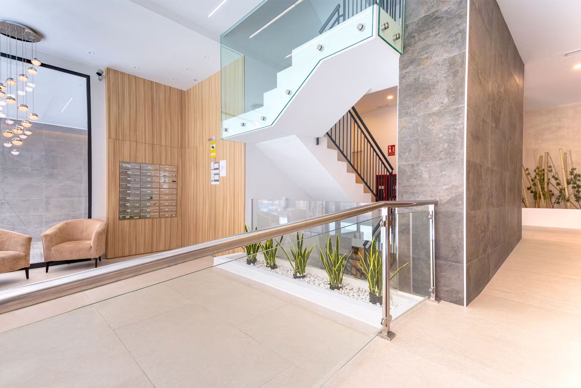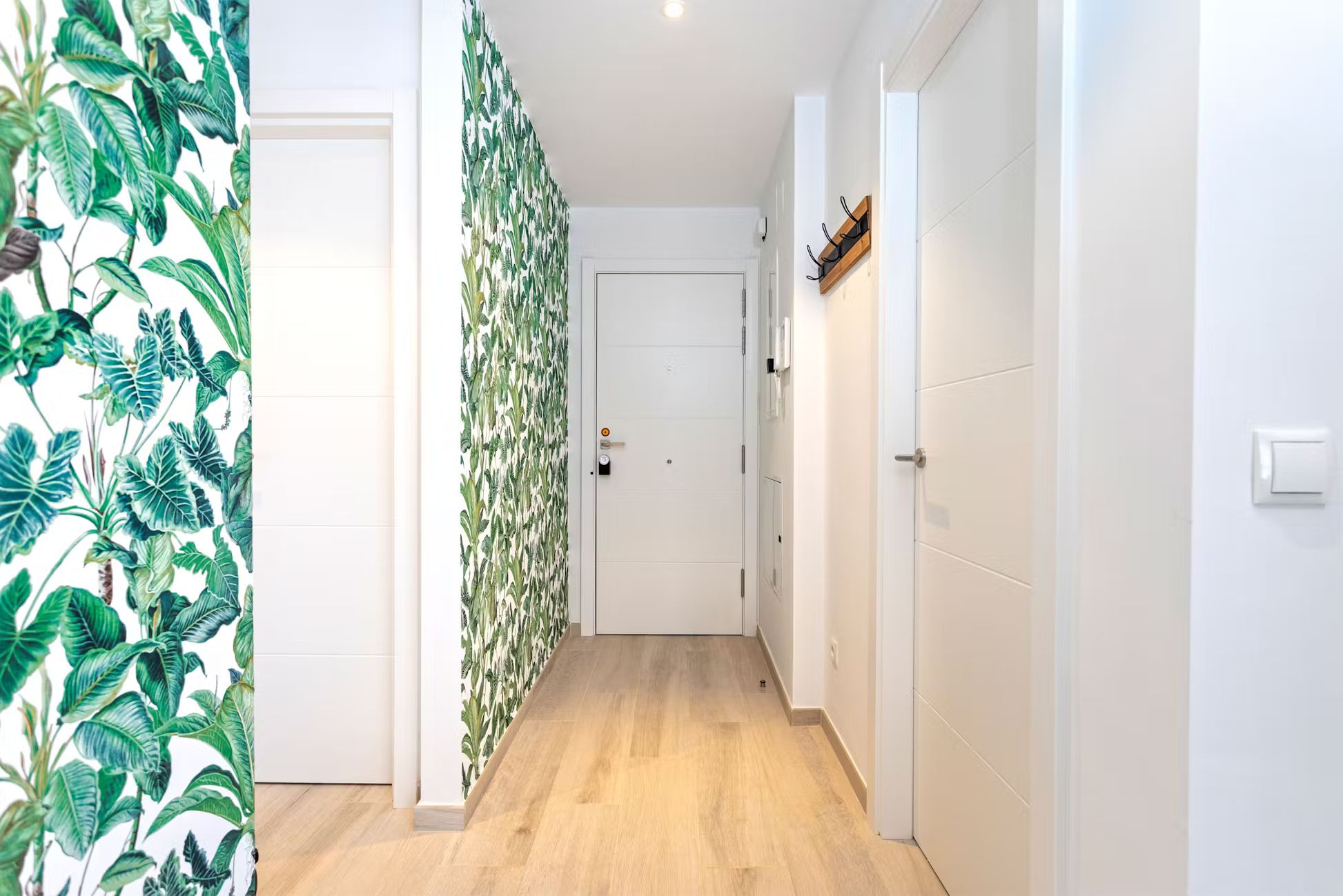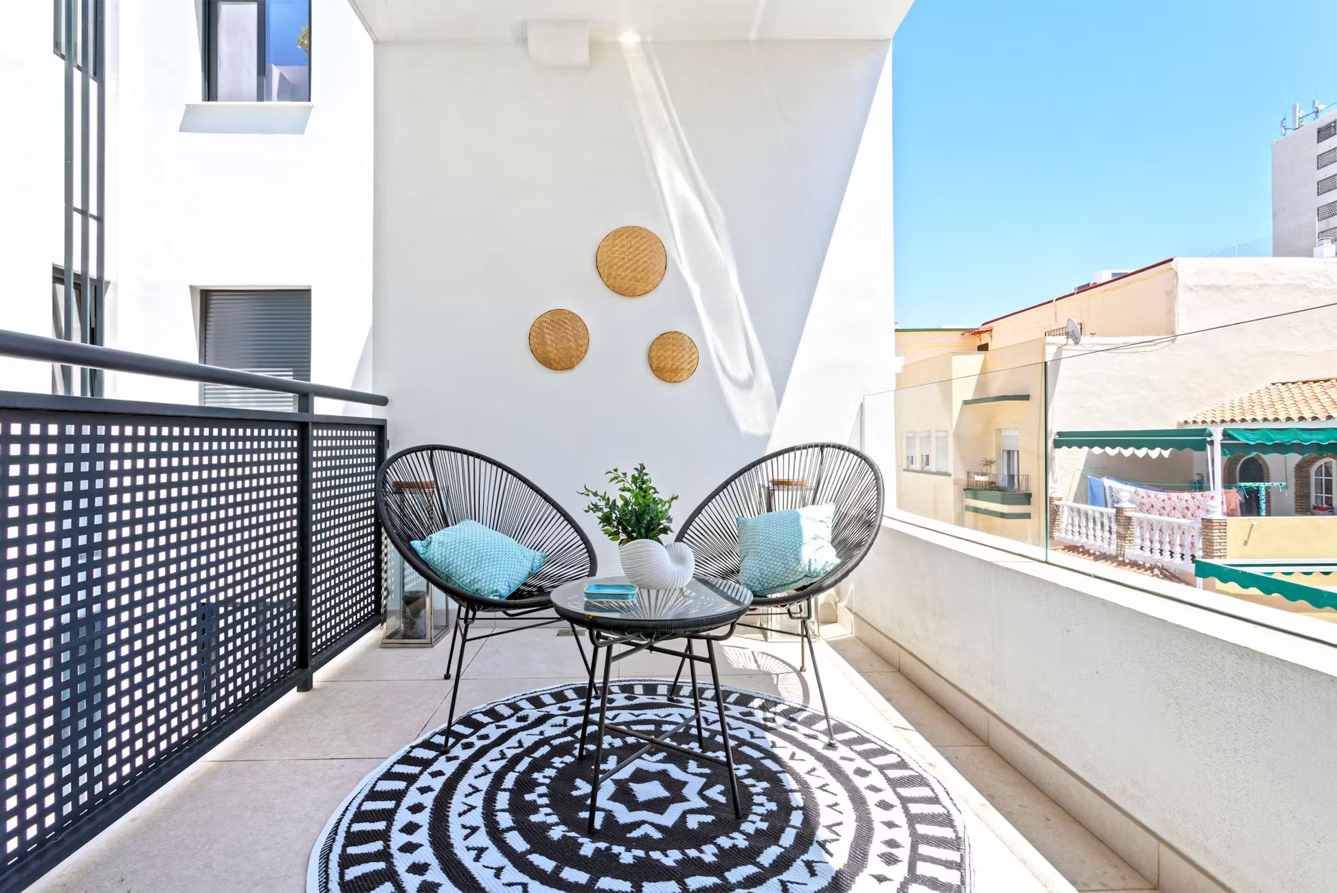 Upon entering the apartment we find a hall that leads directly to the kitchen, fully equipped and open to the living room. The living room, modern and decorated with a design, has a double sofa bed, giving the apartment capacity for up to 6 people. In addition, from the living room we access a small private terrace with 2 chairs and a table to enjoy the good weather of Malaga. The apartment has two bedrooms, one with a 1.80 x 200 cm bed and an en-suite bathroom with a shower, and the other with two 0.90 x 200 cm single beds. Both bedrooms have television. In addition, the apartment has another complete bathroom with a bathtub. In addition, the apartment has a private garage and a magnificent solarium on the top floor of the building, with a swimming pool open from may to october, sun loungers, barbecue and table areas. This area is communal. It is located in a modern and luxurious building on Calle Constancia a few meters from the María Zambrano train station (the main train station in Malaga), Vialia and Larios shopping centers and the Mercado del Carmen. It is also a few meters from the Port of Malaga and the beach