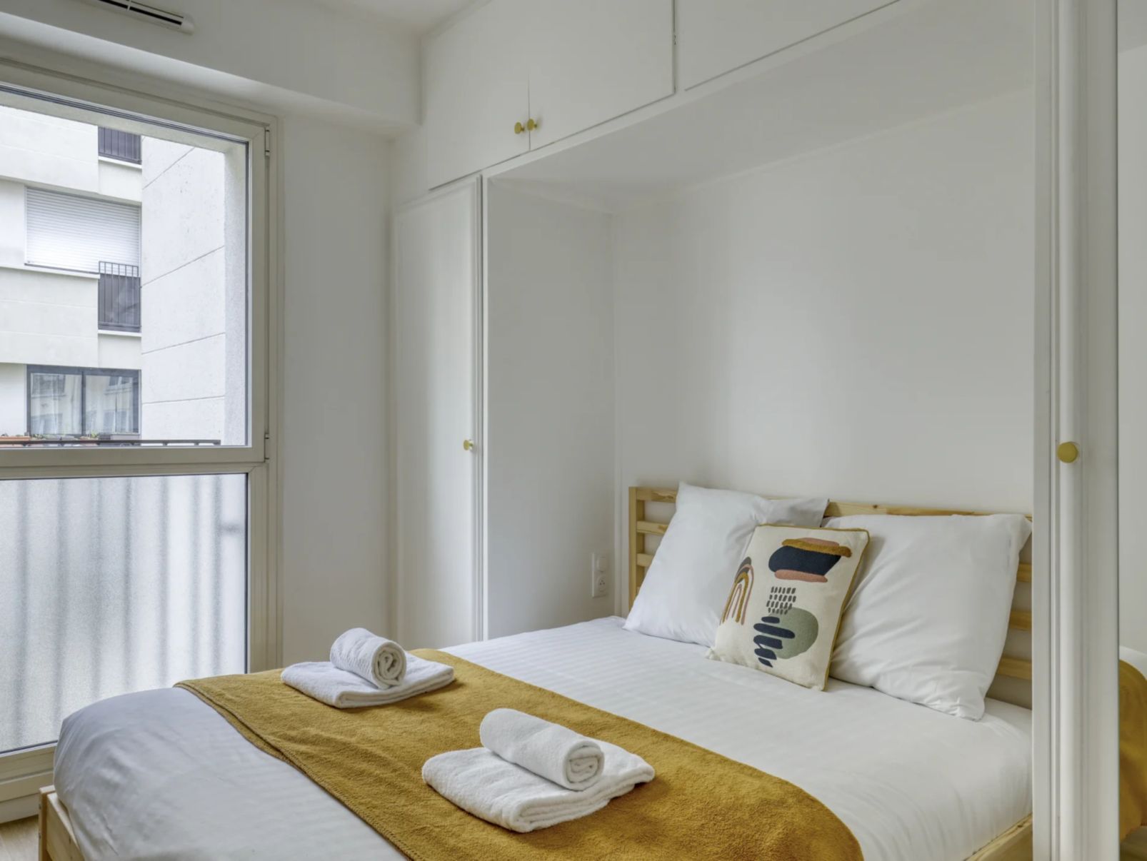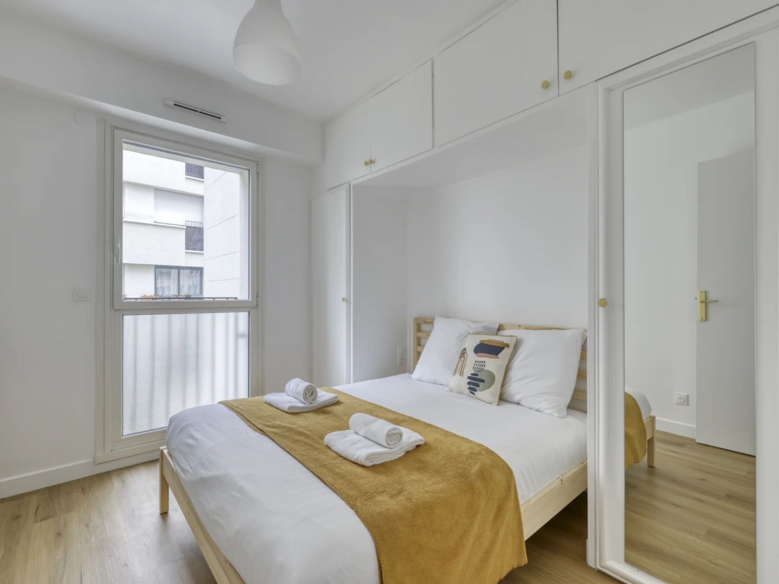Stunning and spacious apartment of 76 sqm in "La Butte aux Cailles" area, which can accommodate up to 4 guests.(Could be 5, thanks to the sofa bed). It is absolutely new, which is a wonderful chance to experience! It offers comfort conditions of high standard with its 2 bedrooms with double beds, 1 bathroom, 1 separate WC, a balcony its fully equipped kitchen. We have selected for you a premium bedding. - Prime Location - Spacious - Quiet, on a courtyard - Fully equipped (washing machine / dryer / dishwasher, stove and oven...) - 2nd floor with elevator