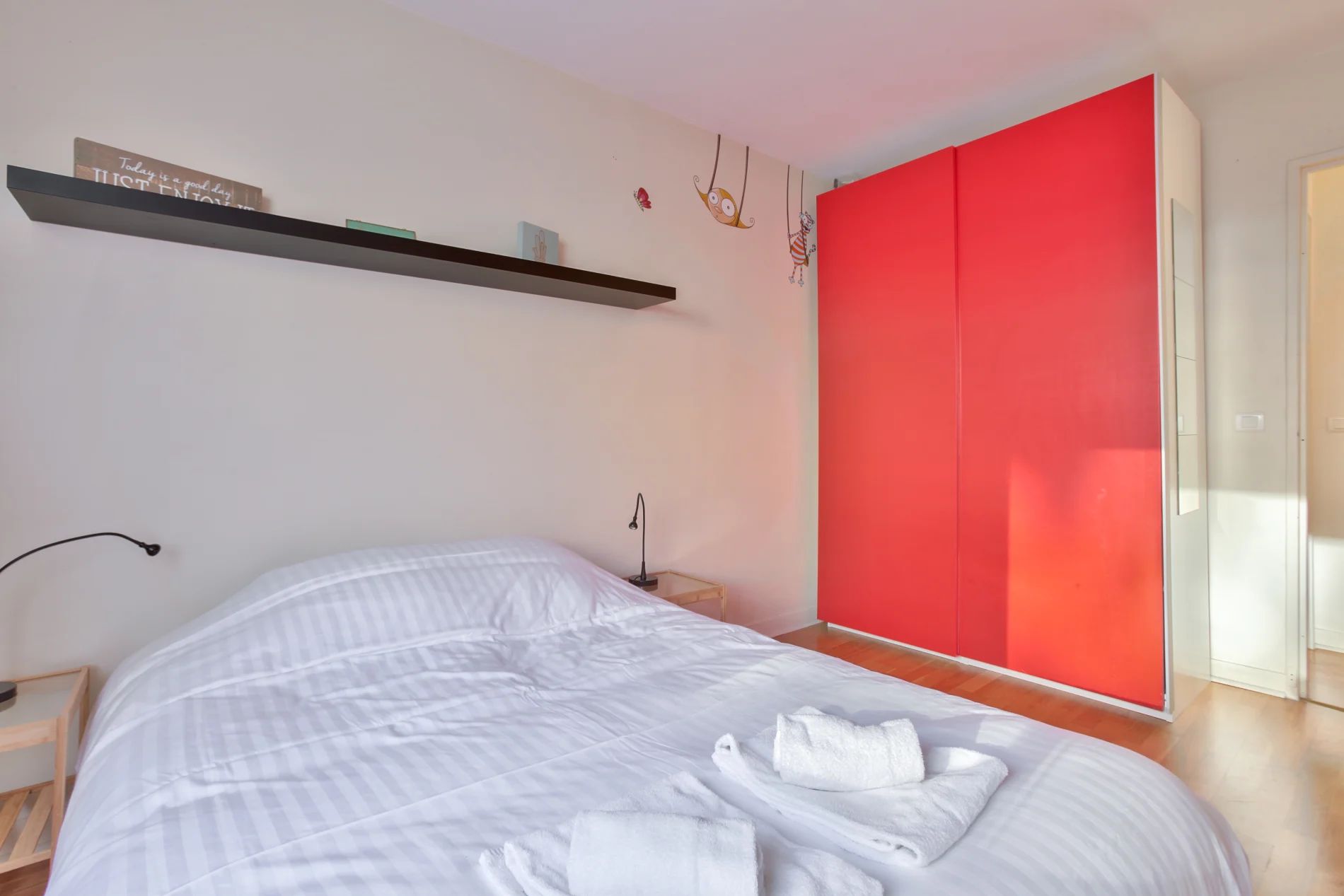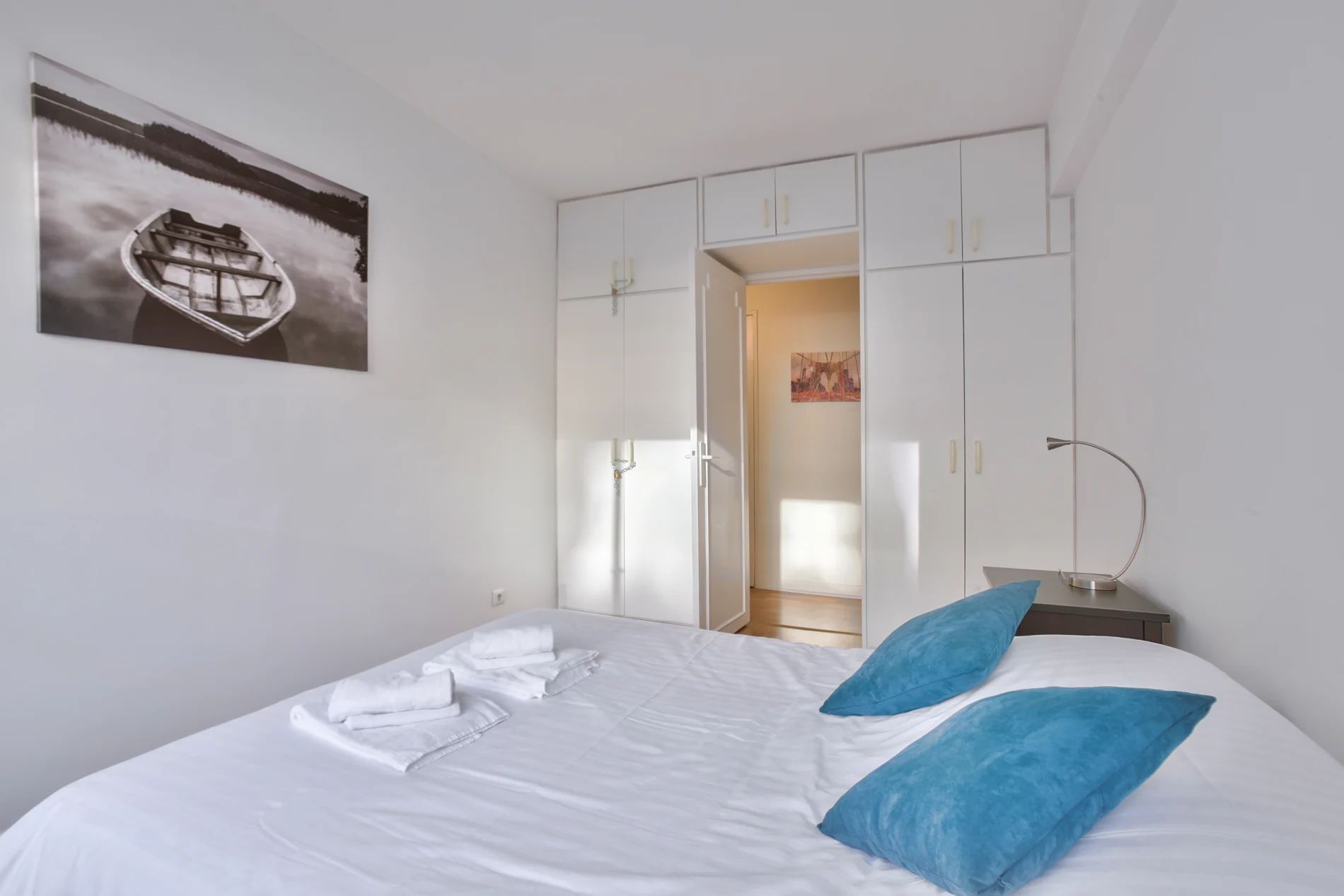 Located 10 minutes walk from the Porte de Versailles exhibition center, this very comfortable, quiet and bright apartment can accommodate up to 6 people. The living room is composed of a lounge area, a dining area and an open kitchen fully equipped with a hob, an oven, a toaster, a dishwasher, a refrigerator, coffee maker and plenty of storage compartments. Two bedrooms each with a double bed are at your disposal and the sofa bed in the living room can also be used as sleeping accommodation for two. The bathroom has a basin and a mirror, a bathtub, a washing machine and a toilet. Located in a shopping district and close to the Metro Convention, you can go directly to Saint Germain des Près, the Champs Elysées and the Galeries LaFayette.