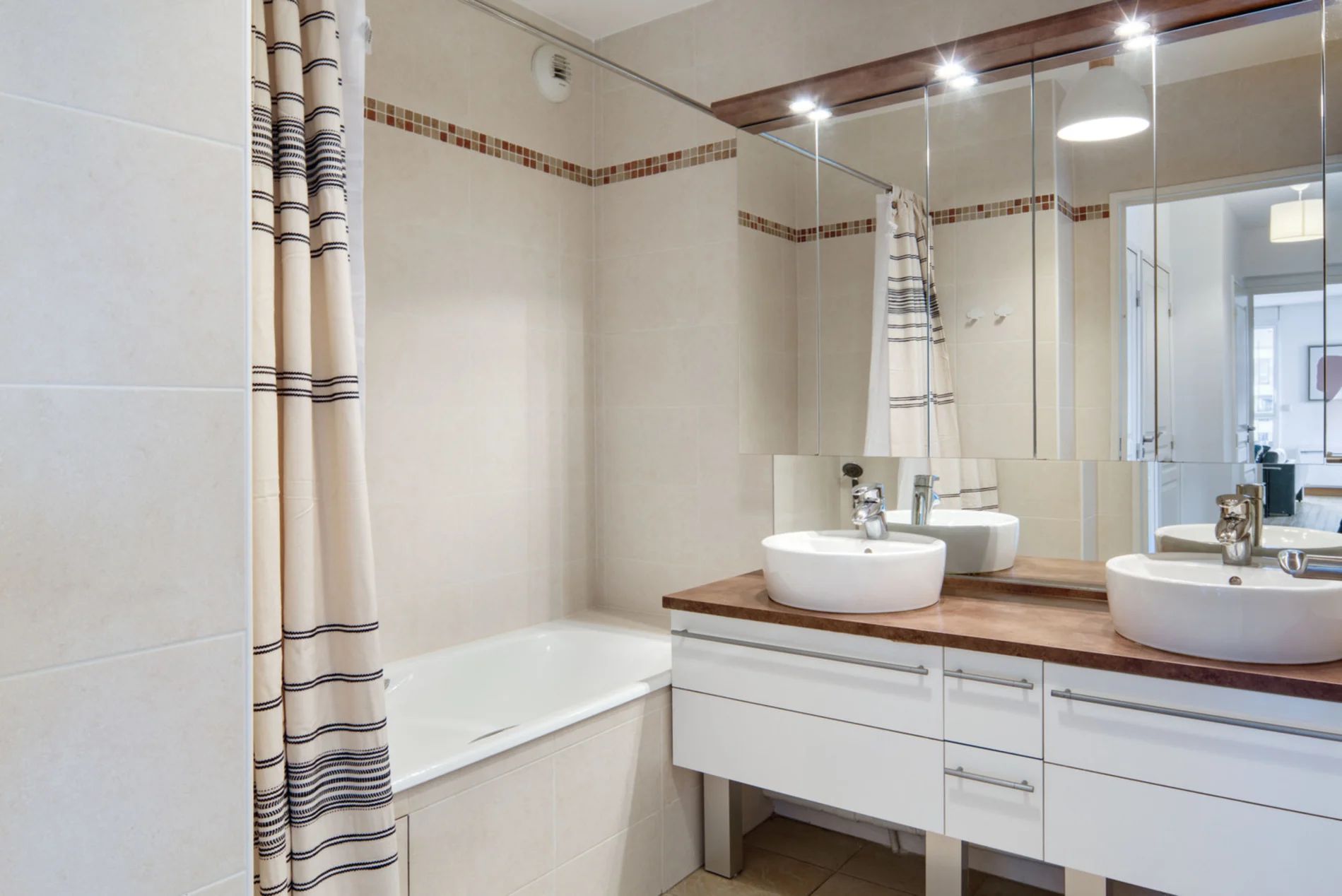 Thoughtfully designed with bespoke finishes, modern furnishings, and a fully-equipped kitchen, you’ll enjoy that “I’m home” feeling with this apartment. Whether you’re lounging in your stylish living room streaming the latest and greatest entertainment on the smart TV or premium wireless speaker, or getting some well-earned rest on the superior quality mattress with luxury linens, you’ll fall in love with everything this Olympiades apartment has to offer