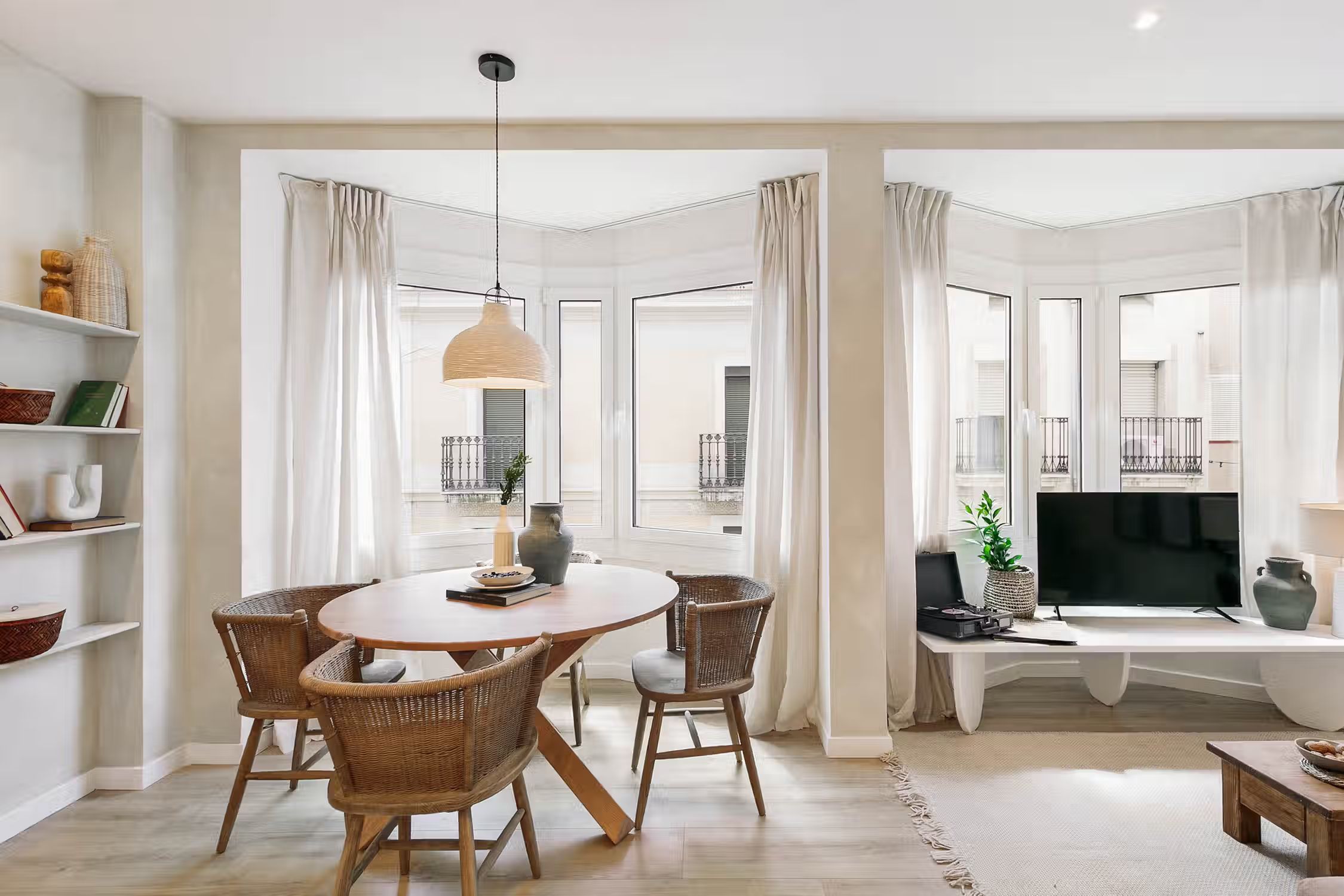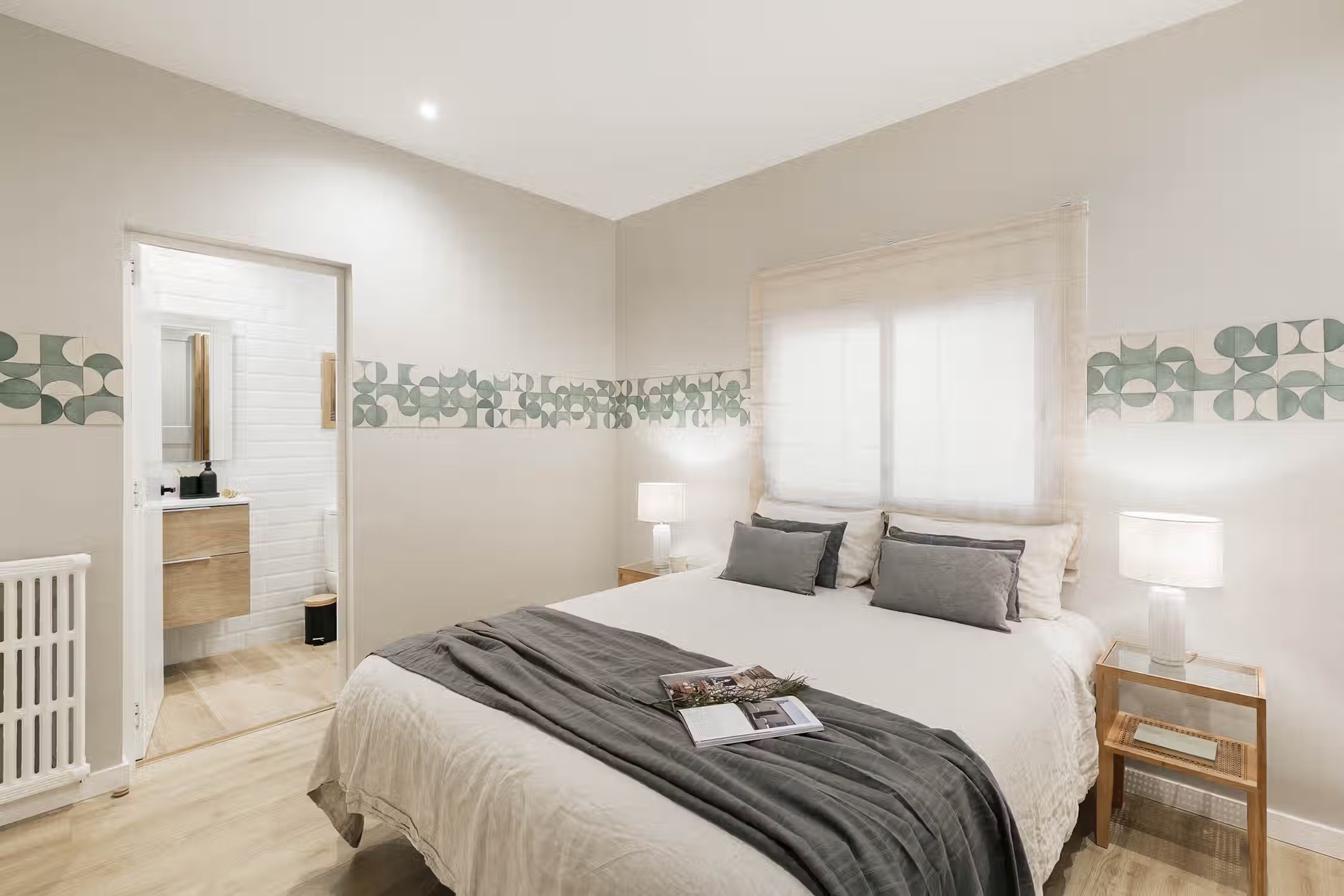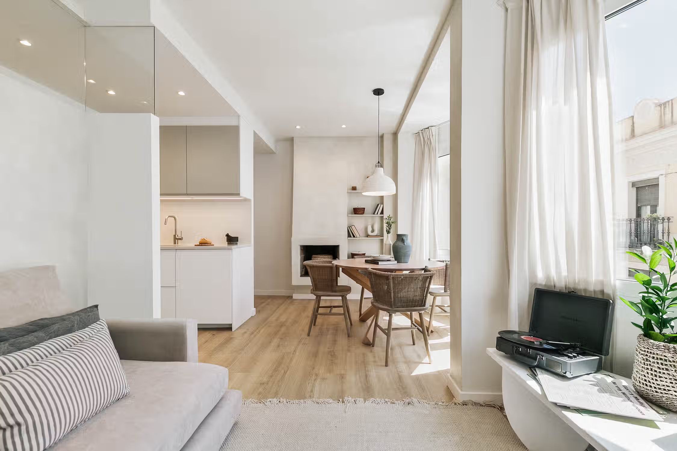 Elevate your stay in Barcelona with this two-bedroom furnished rental in the heart of Sant Gervasi. The Conca apartment belongs to our special Amalfi Coast line offering you rocky coastal neutrals, light wooden accents, and artisan craft touches designs. This home comes with a fully equipped kitchen, beddings and towels, and a work area perfect for digital nomads. What more could you ask for! Our in-house team of interior designers placed a lot of thought into this furnished rental in Barcelona. Whether you're lounging on a custom Ukio-fabricated couch or spending time in the kitchen, you'll never miss that 'home' feeling. This apartment also comes with HD television, high-speed internet, fresh linens and towels, and a Crosley vinyl and Bluetooth speaker. There is so much to love in this Sant Gervasi apartment