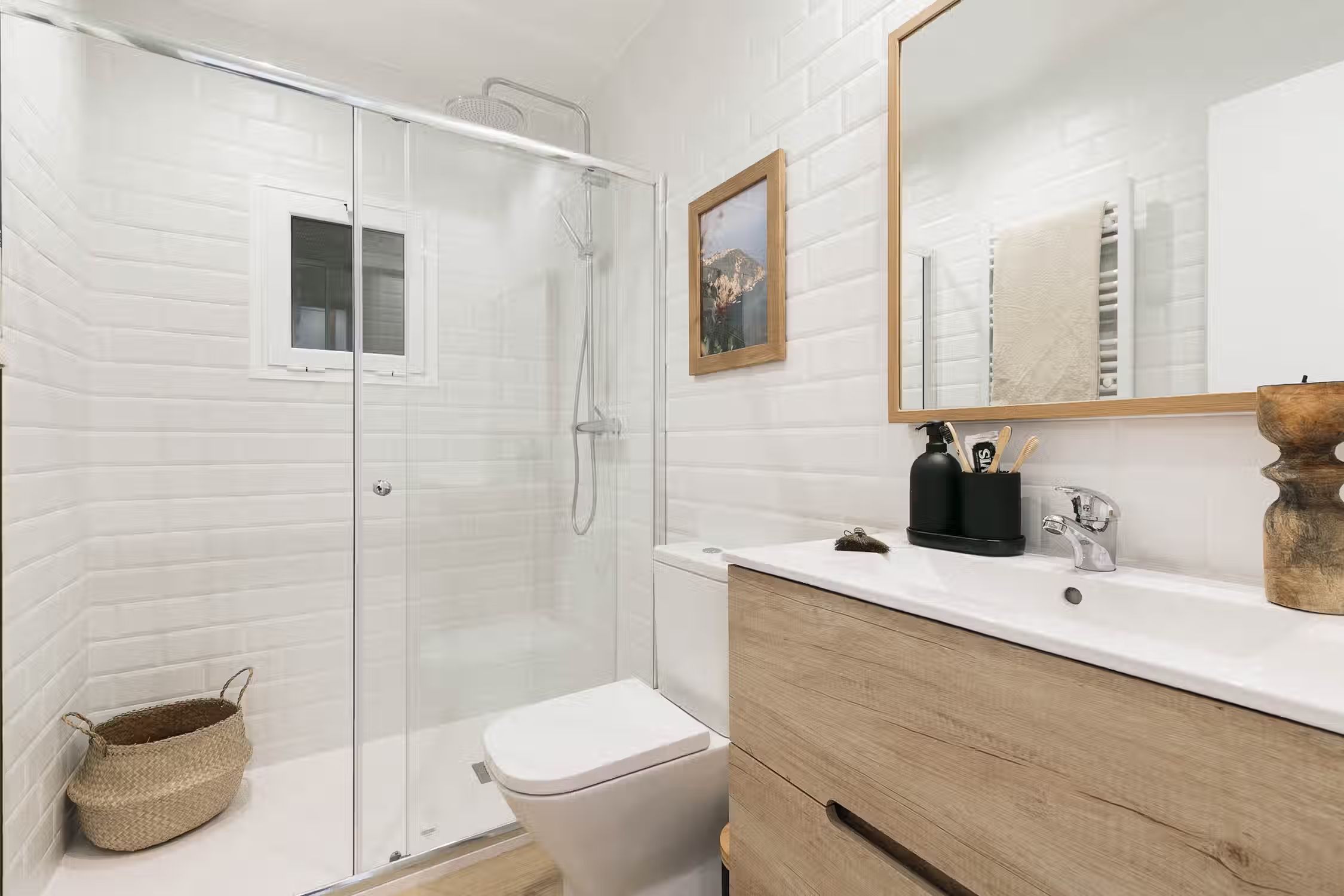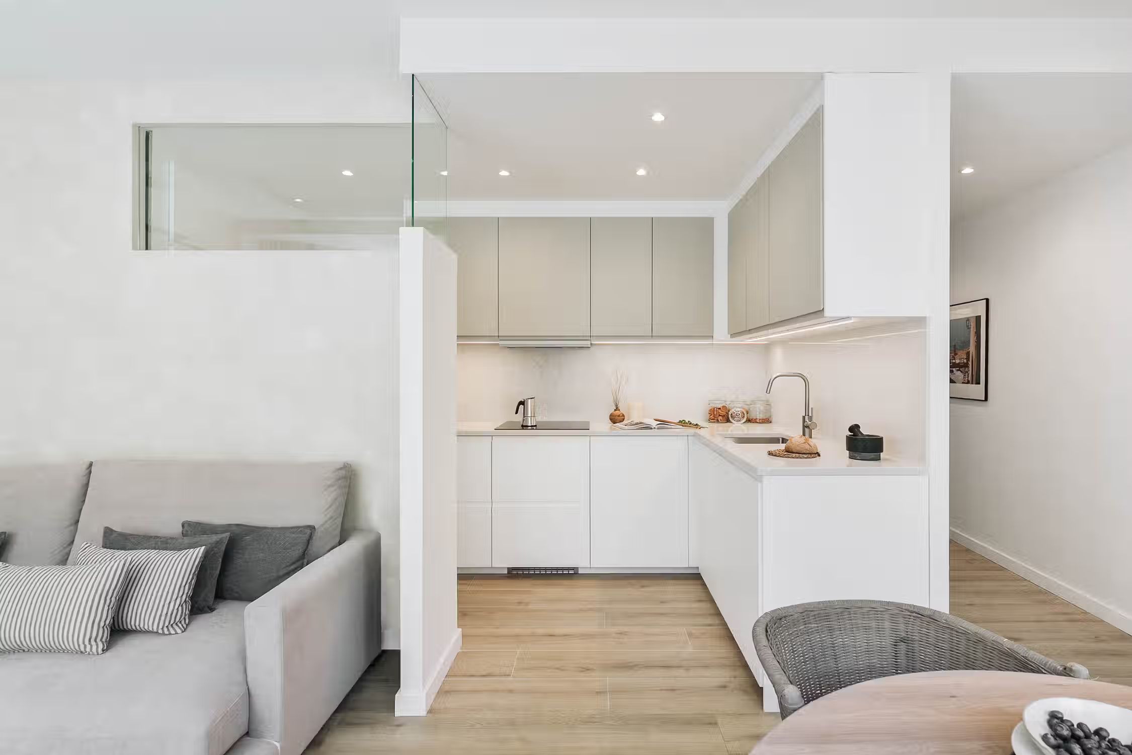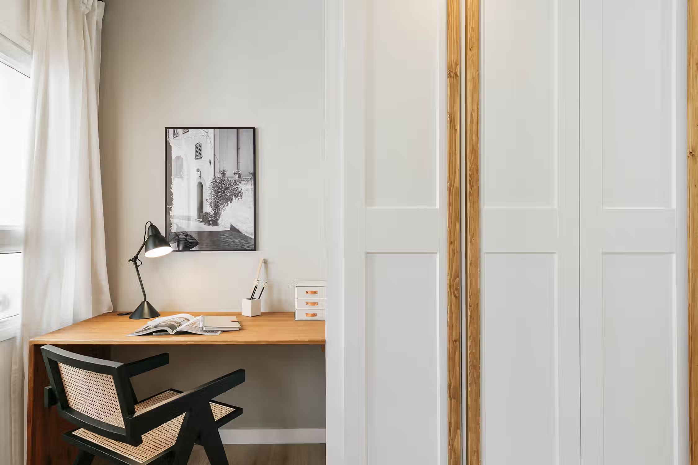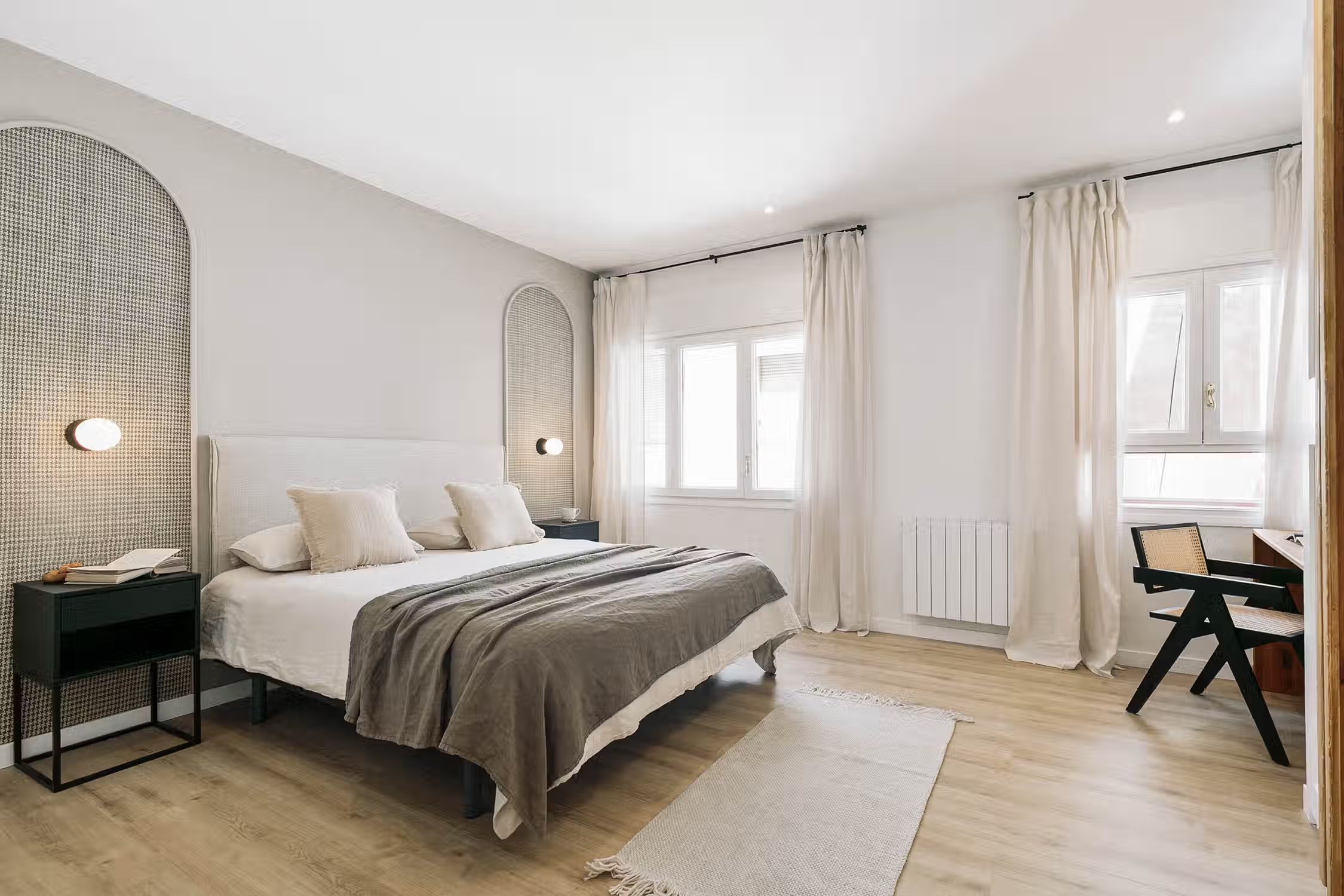 Elevate your stay in Barcelona with this two-bedroom furnished rental in the heart of Sant Gervasi. The Conca apartment belongs to our special Amalfi Coast line offering you rocky coastal neutrals, light wooden accents, and artisan craft touches designs. This home comes with a fully equipped kitchen, beddings and towels, and a work area perfect for digital nomads. What more could you ask for! Our in-house team of interior designers placed a lot of thought into this furnished rental in Barcelona. Whether you're lounging on a custom Ukio-fabricated couch or spending time in the kitchen, you'll never miss that 'home' feeling. This apartment also comes with HD television, high-speed internet, fresh linens and towels, and a Crosley vinyl and Bluetooth speaker. There is so much to love in this Sant Gervasi apartment