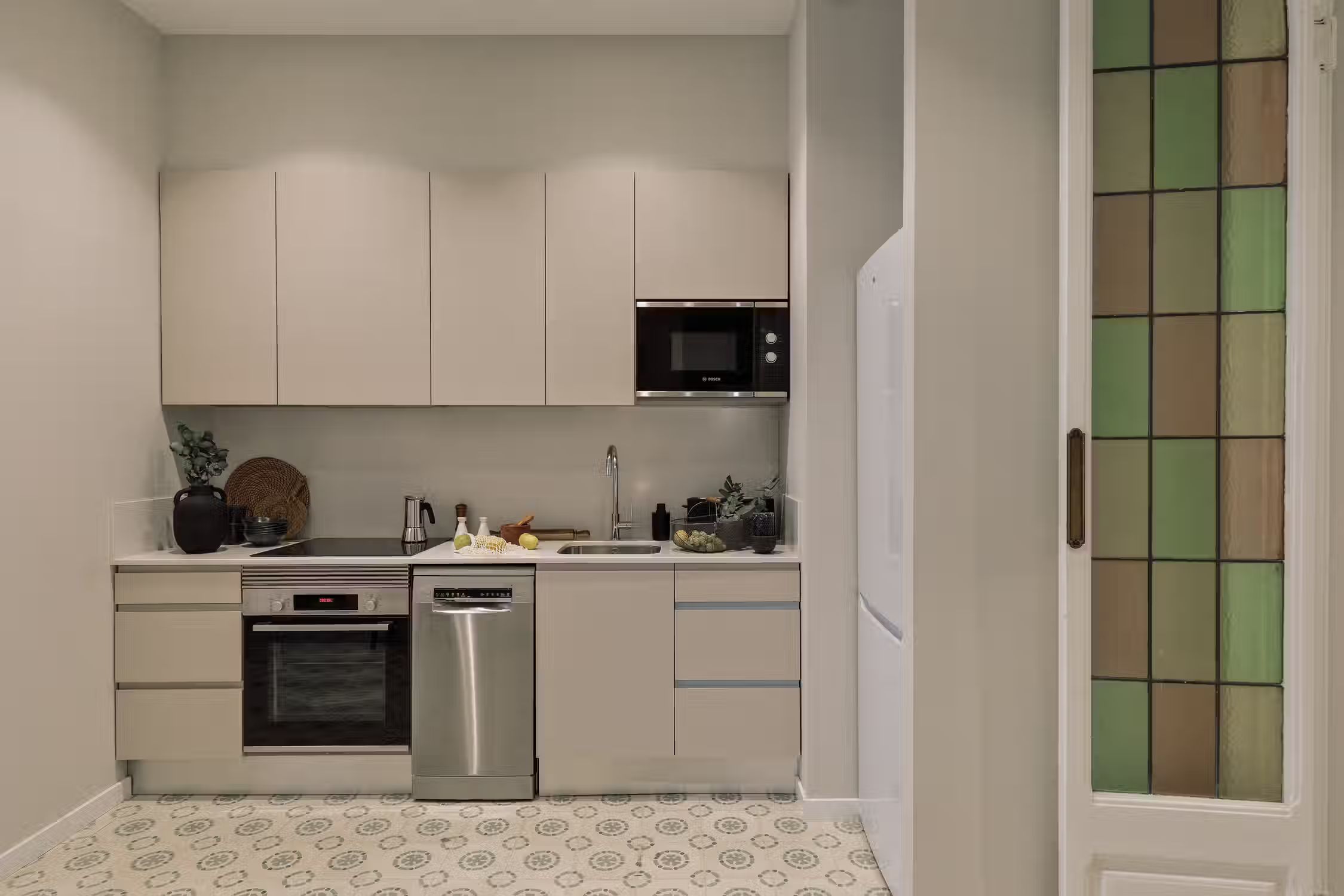 Spectacular apartment in Gran de Gràcia street , with 2 bedrooms and 2 bathrooms. The kitchen is equipped with state-of-the-art appliances and kitchenware. The beds are equipped with soft bedding, ideal for a good night's rest. The apartment has 2 bathrooms equipped with a full shower and towels. In addition, the apartment is equipped with high-speed WiFi and SmartTV. The apartment has a washing machine, dishwasher and air conditioning for your maximum comfort. *For comfort, this apartment comes equipped with air conditioning in the living room and bedrooms