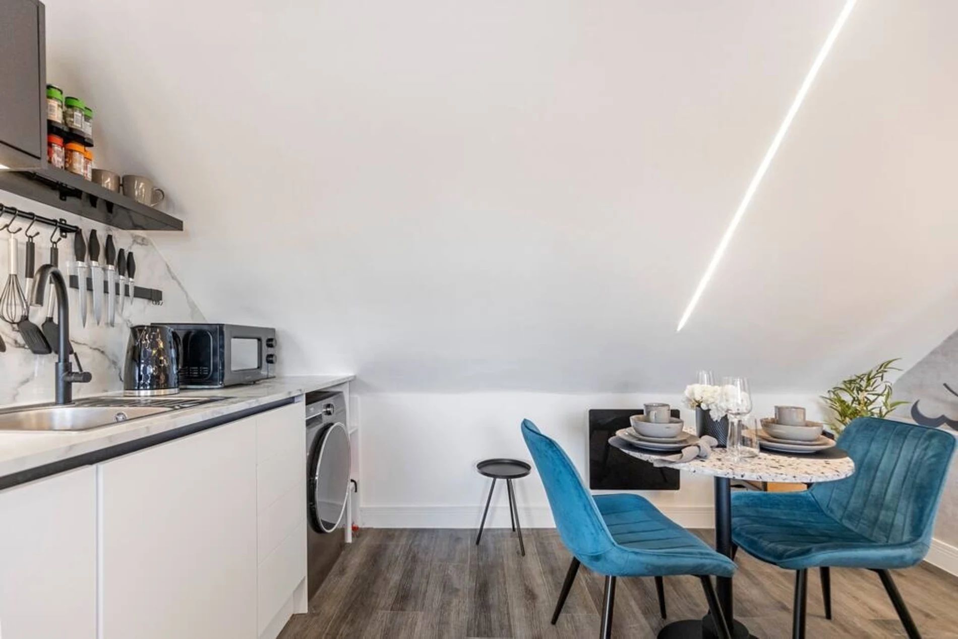 This charming studio nestled in the heart of Camberwell, just a stone's throw away from the picturesque Burgess Park. This thoughtfully decorated space is designed to provide you with a relaxing and rejuvenating stay, featuring pops of soothing turquoise and vibrant yellow that add a touch of warmth and cheerfulness. The studio's strategic location allows easy access to the vibrant atmosphere of Camberwell, with its eclectic mix of shops, cafes, and cultural attractions. The space The studio boasts a spacious interior that revolves around your comfort. The highlight is a luxurious king-sized bed, inviting you to unwind and indulge in a restful night's sleep. The decor creates a tranquil atmosphere, making it the perfect retreat after a day of exploring the vibrant streets of London. For those moments when you prefer a quiet night in, This well-equipped kitchen has everything you need to whip up quick and delicious meals that you can enjoy on the dining table.