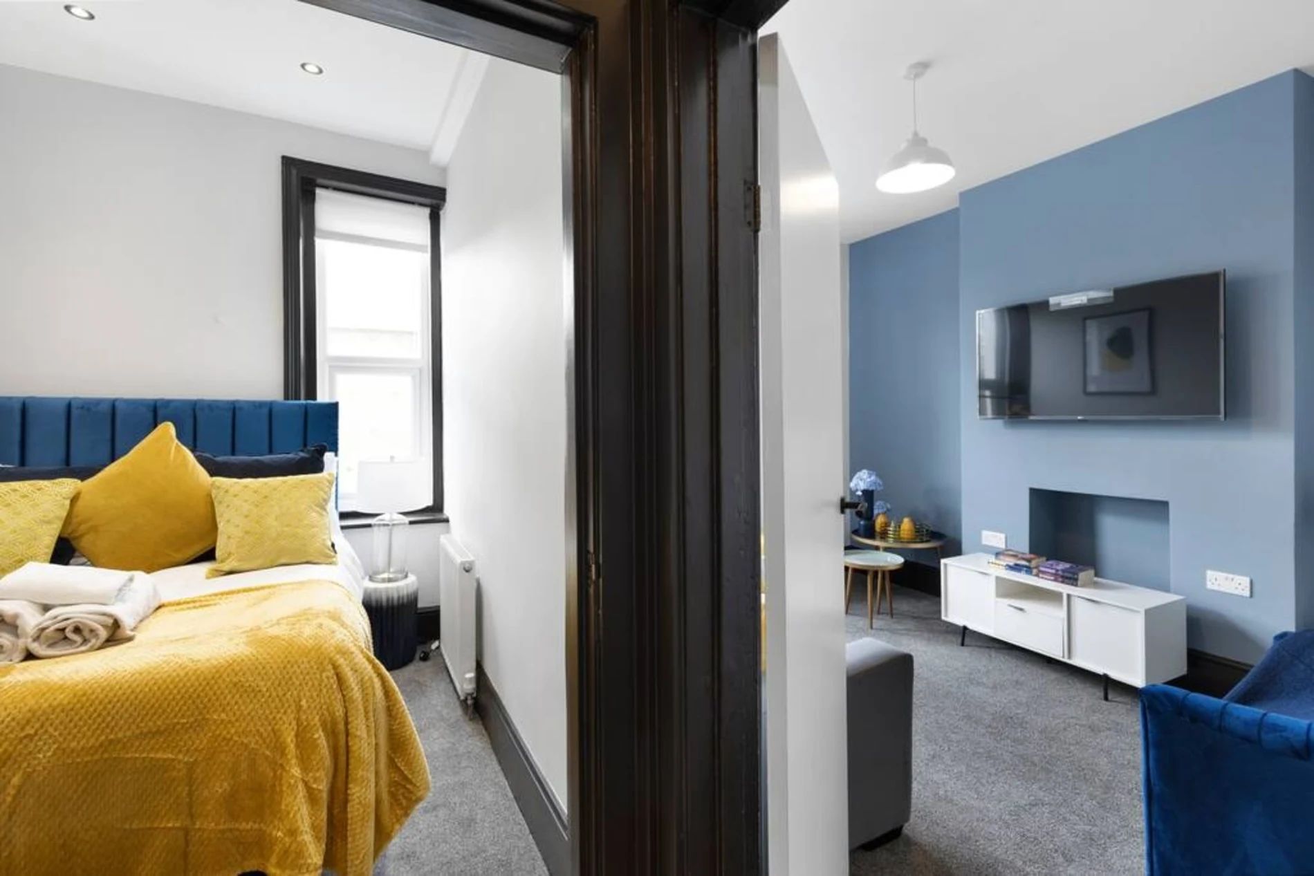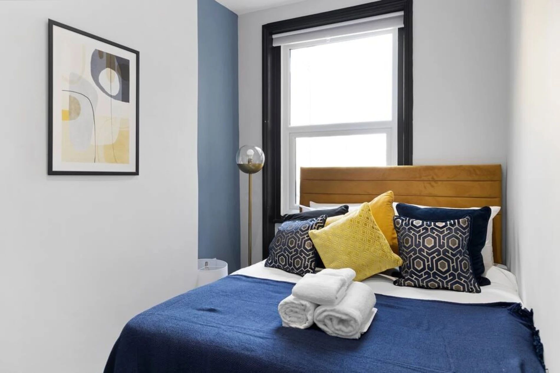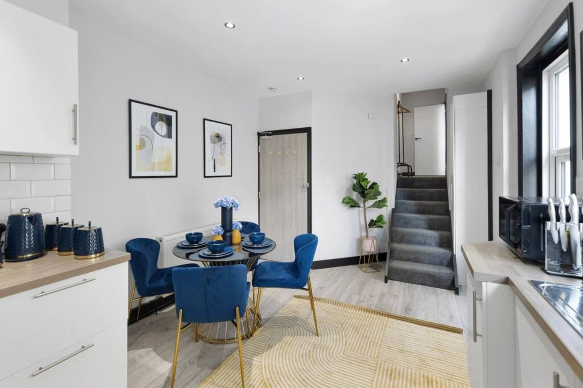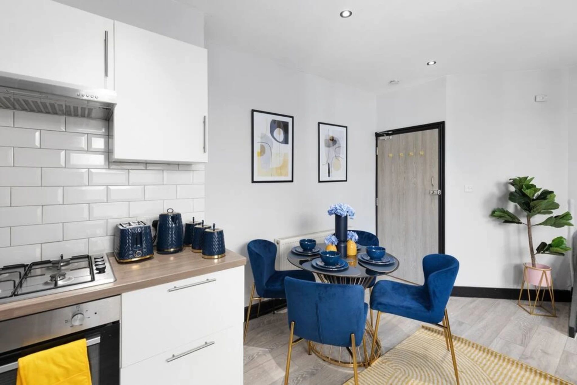 A 2-bedroom flat that effortlessly blends modern sophistication with a touch of vibrant charm. Step into a residence where every detail has been curated to create a tranquil yet lively atmosphere. The unbeatable location adds another layer of appeal. Bishops Park, a verdant escape along the Thames, is a mere 5-minute stroll away. Fulham Palace, steeped in history and surrounded by enchanting gardens, is just an 8-minute walk, inviting you to explore its cultural treasures. The space This thoughtfully designed flat features 2 bedrooms, providing a comfortable and inviting space for residents. The shared bathroom, adorned with a luxurious bathtub, offers a retreat for relaxation and rejuvenation. The living room is a haven of comfort, bathed in natural light and adorned with pops of subdued blue and yellow. This tasteful color palette creates a tranquil ambiance with just the right touch of liveliness. Whether you're entertaining guests or enjoying a quiet evening in, the living space is the perfect setting for making lasting memories. The full kitchen, complete with modern appliances, invites culinary exploration. Prepare delightful meals and gather in the adjacent dining area, where the soothing colors continue to set the mood for enjoyable shared moments.