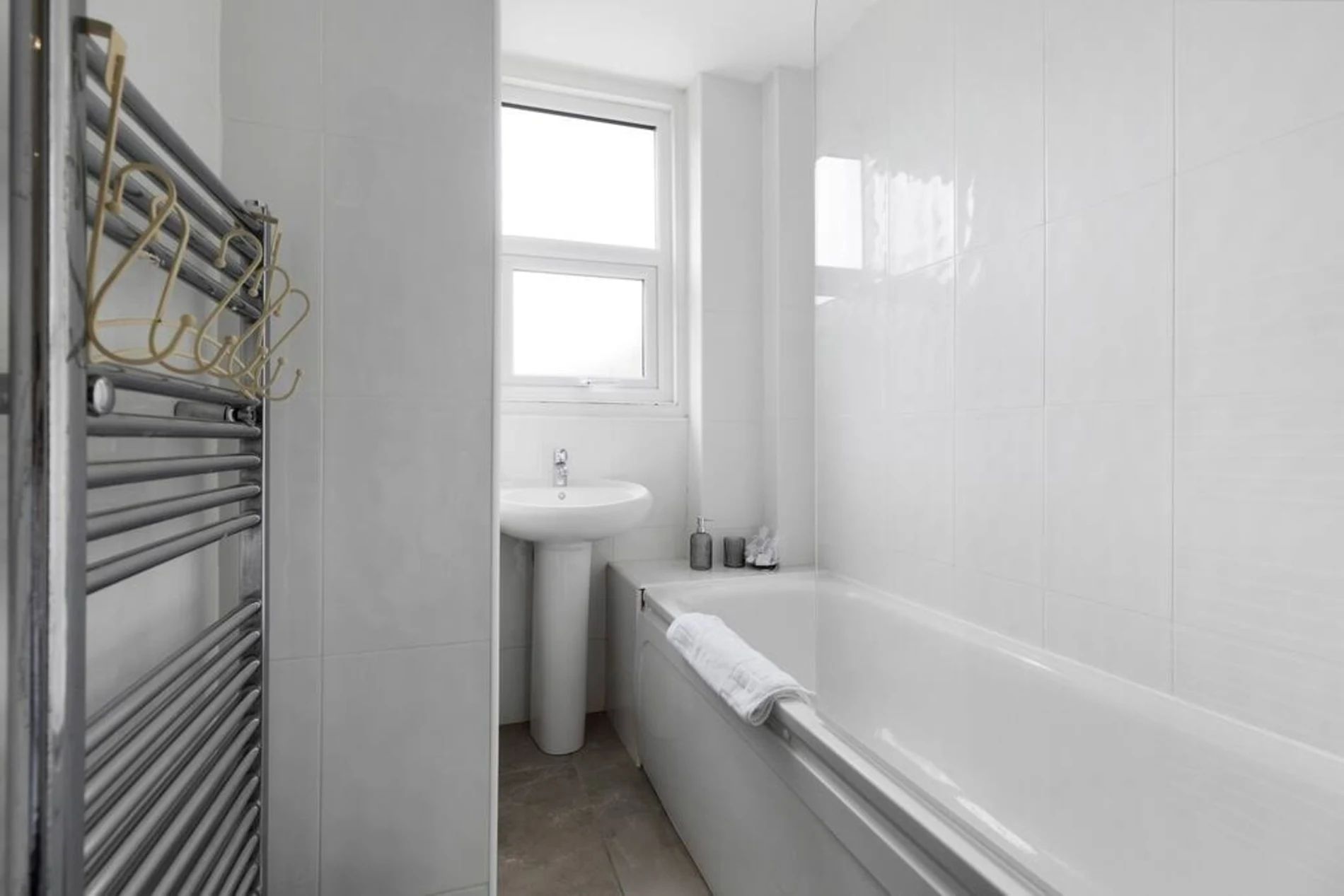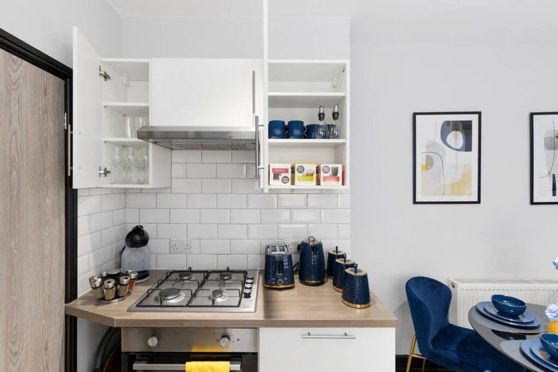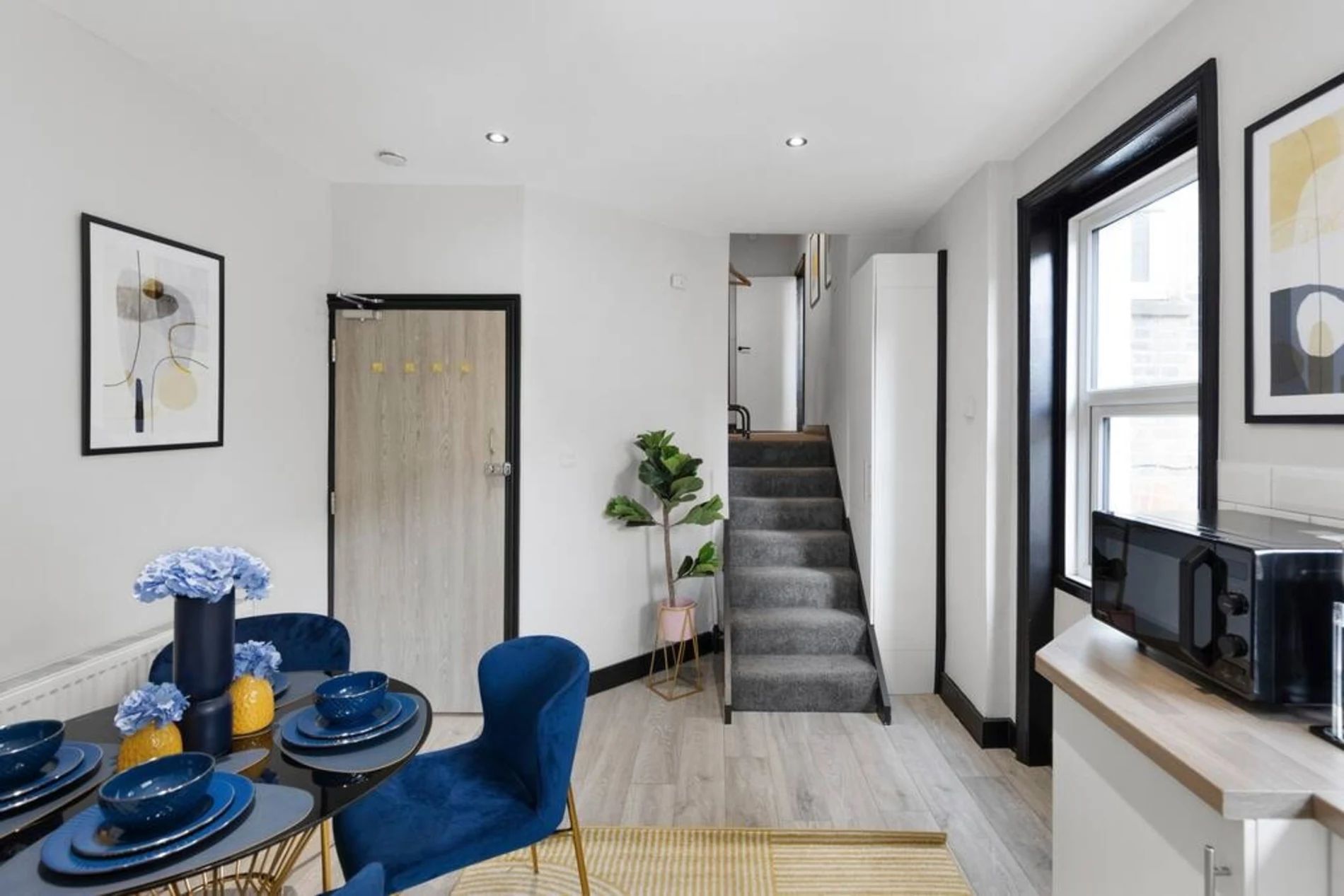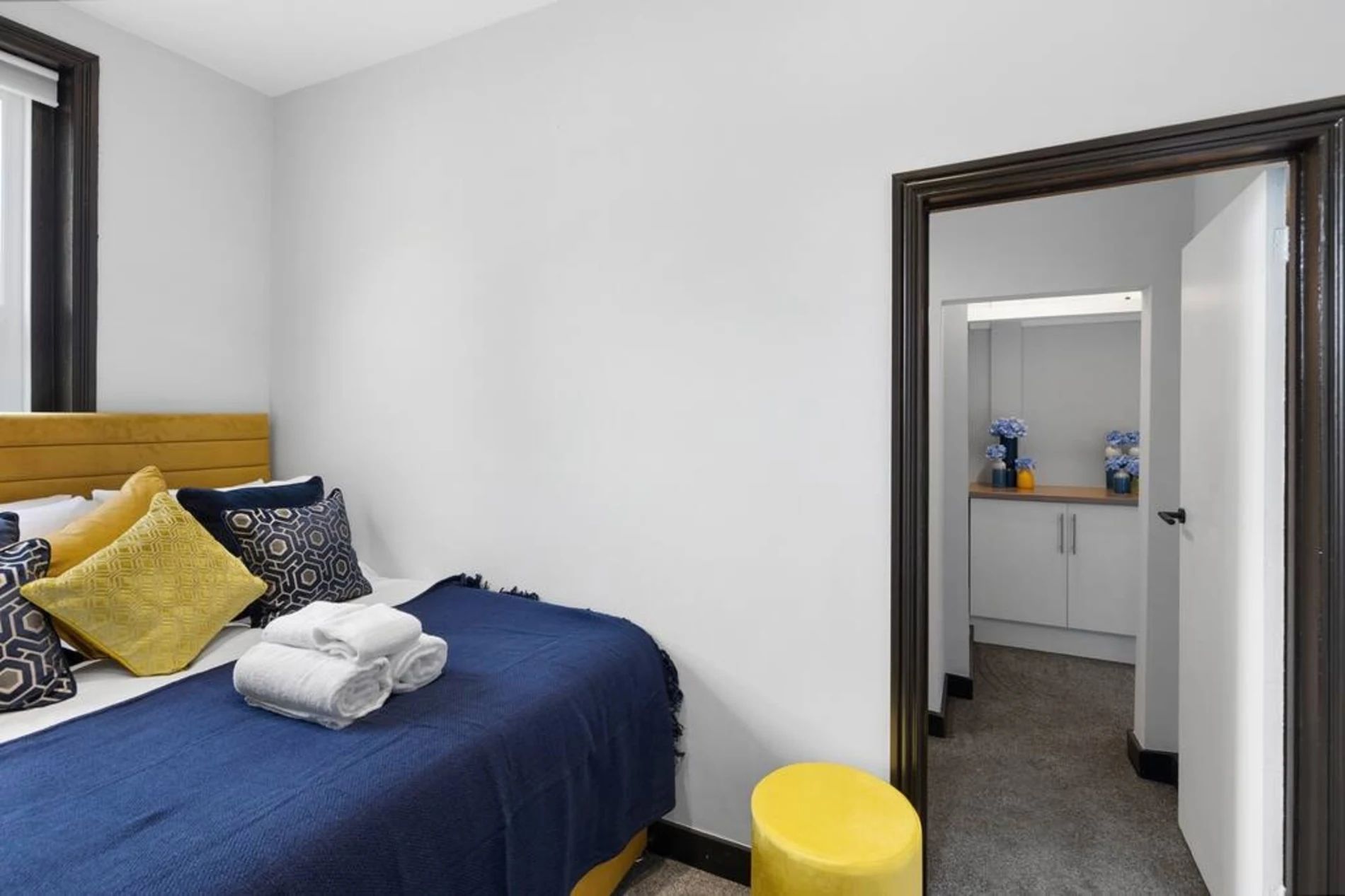 A 2-bedroom flat that effortlessly blends modern sophistication with a touch of vibrant charm. Step into a residence where every detail has been curated to create a tranquil yet lively atmosphere. The unbeatable location adds another layer of appeal. Bishops Park, a verdant escape along the Thames, is a mere 5-minute stroll away. Fulham Palace, steeped in history and surrounded by enchanting gardens, is just an 8-minute walk, inviting you to explore its cultural treasures. The space This thoughtfully designed flat features 2 bedrooms, providing a comfortable and inviting space for residents. The shared bathroom, adorned with a luxurious bathtub, offers a retreat for relaxation and rejuvenation. The living room is a haven of comfort, bathed in natural light and adorned with pops of subdued blue and yellow. This tasteful color palette creates a tranquil ambiance with just the right touch of liveliness. Whether you're entertaining guests or enjoying a quiet evening in, the living space is the perfect setting for making lasting memories. The full kitchen, complete with modern appliances, invites culinary exploration. Prepare delightful meals and gather in the adjacent dining area, where the soothing colors continue to set the mood for enjoyable shared moments.