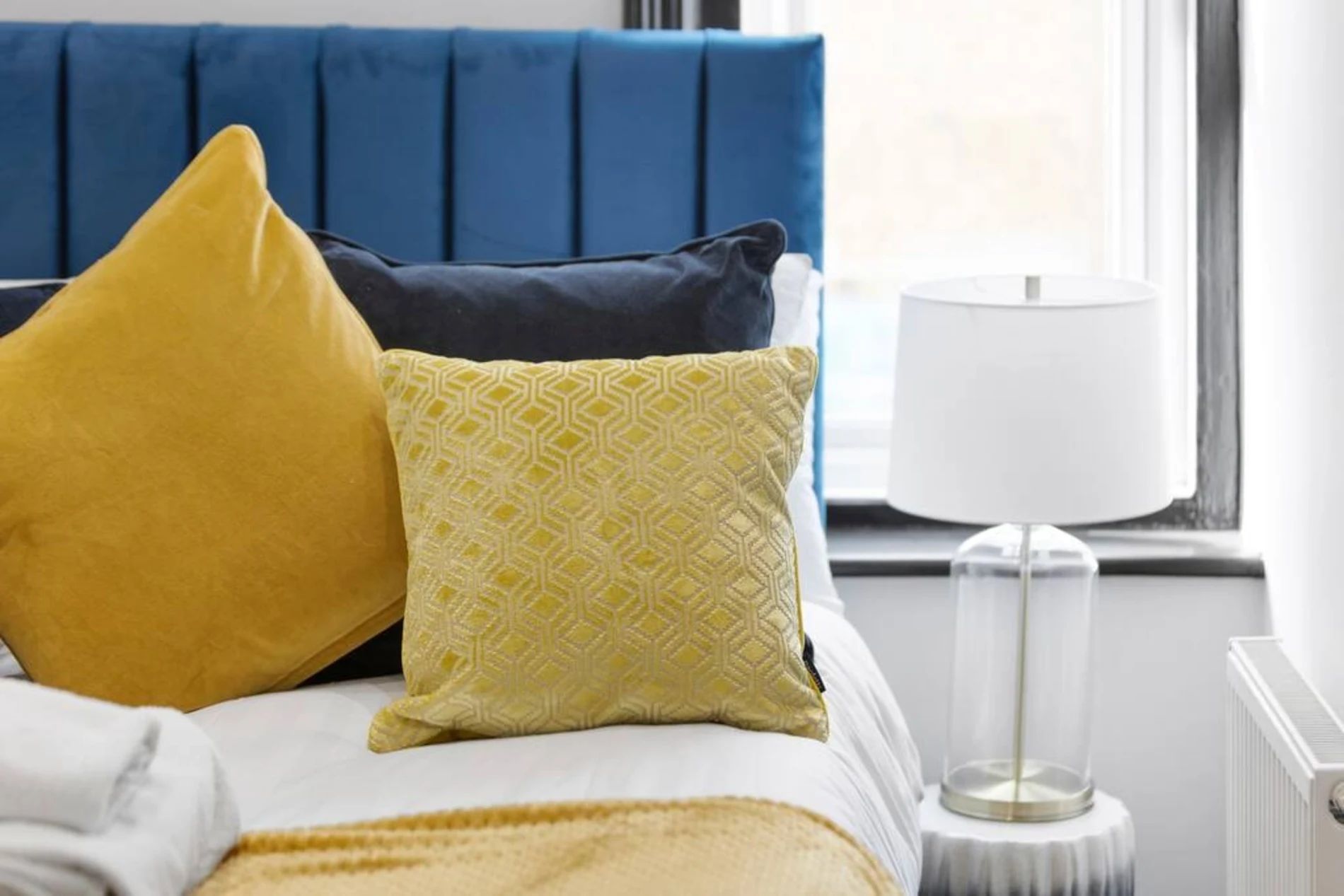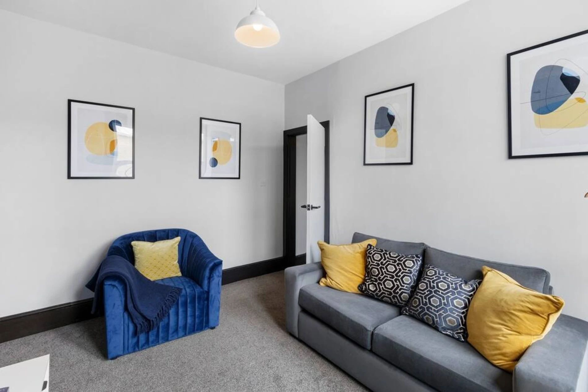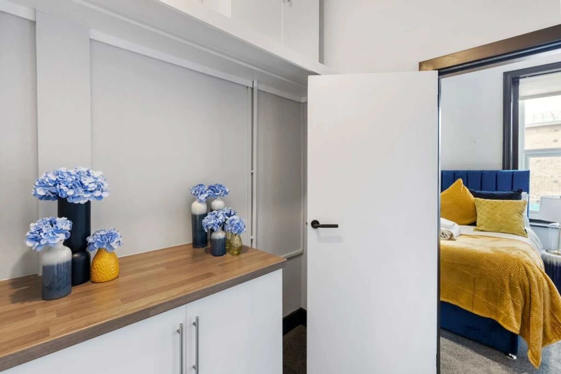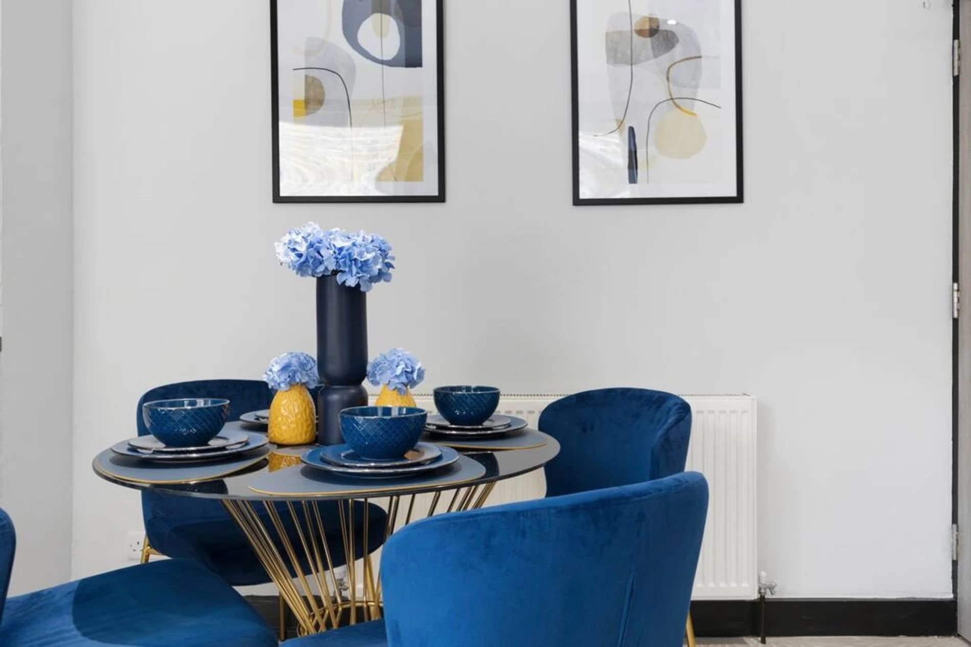 A 2-bedroom flat that effortlessly blends modern sophistication with a touch of vibrant charm. Step into a residence where every detail has been curated to create a tranquil yet lively atmosphere. The unbeatable location adds another layer of appeal. Bishops Park, a verdant escape along the Thames, is a mere 5-minute stroll away. Fulham Palace, steeped in history and surrounded by enchanting gardens, is just an 8-minute walk, inviting you to explore its cultural treasures. The space This thoughtfully designed flat features 2 bedrooms, providing a comfortable and inviting space for residents. The shared bathroom, adorned with a luxurious bathtub, offers a retreat for relaxation and rejuvenation. The living room is a haven of comfort, bathed in natural light and adorned with pops of subdued blue and yellow. This tasteful color palette creates a tranquil ambiance with just the right touch of liveliness. Whether you're entertaining guests or enjoying a quiet evening in, the living space is the perfect setting for making lasting memories. The full kitchen, complete with modern appliances, invites culinary exploration. Prepare delightful meals and gather in the adjacent dining area, where the soothing colors continue to set the mood for enjoyable shared moments.