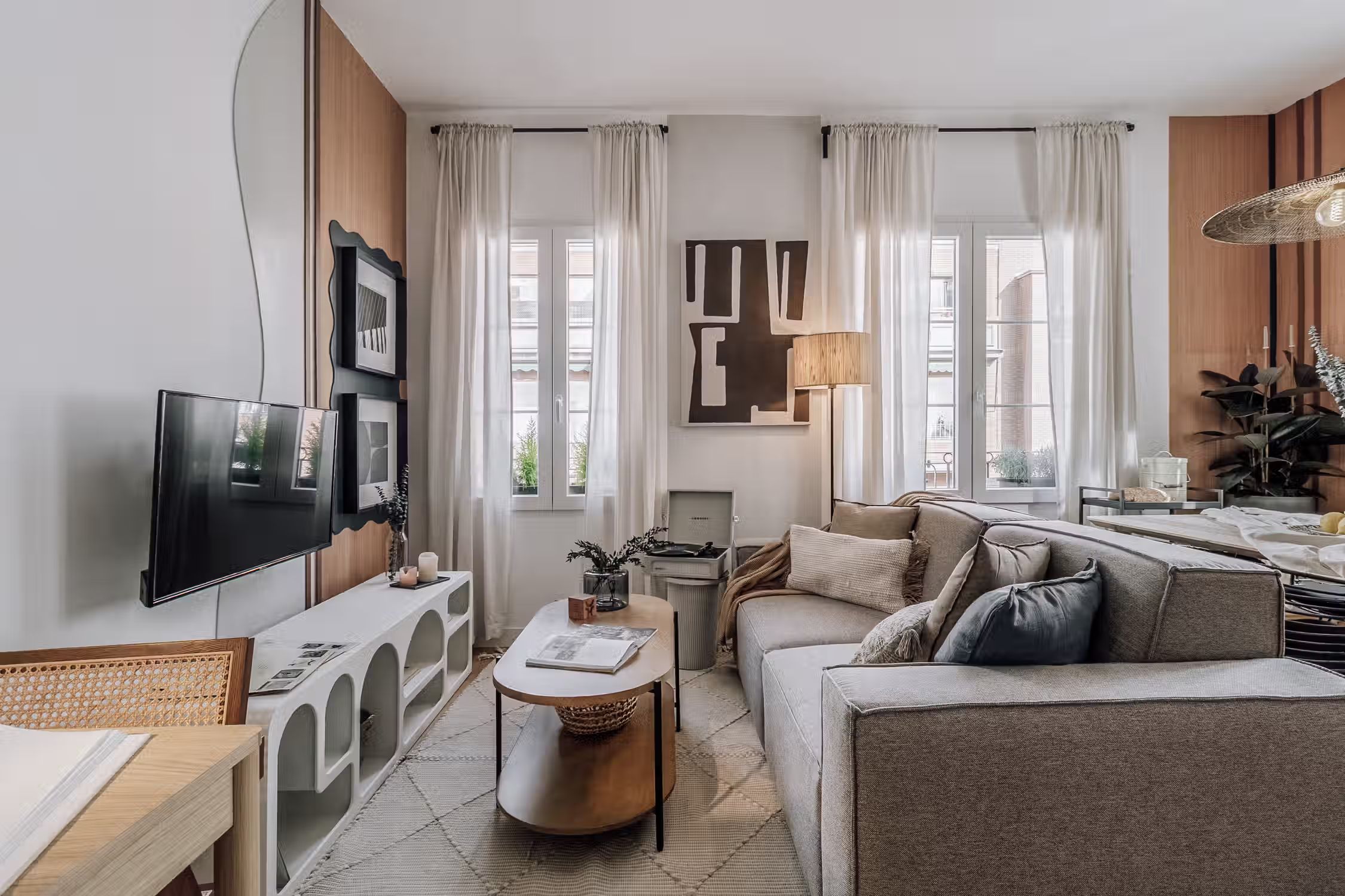 Spectacular apartment in Duque de Sesto street, with 2 bedrooms and 2 bathrooms. The kitchen is equipped with appliances and kitchenware. The beds are equipped with soft bedding, ideal for a good night's rest. The apartment has 2 bathrooms equipped with a full shower and towels. In addition, the apartment is equipped with high-speed WiFi and SmartTV. The apartment has a washing machine, dishwasher and air conditioning for your maximum comfort. *For comfort, this apartment comes equipped with air conditioning in the living room and bedrooms
