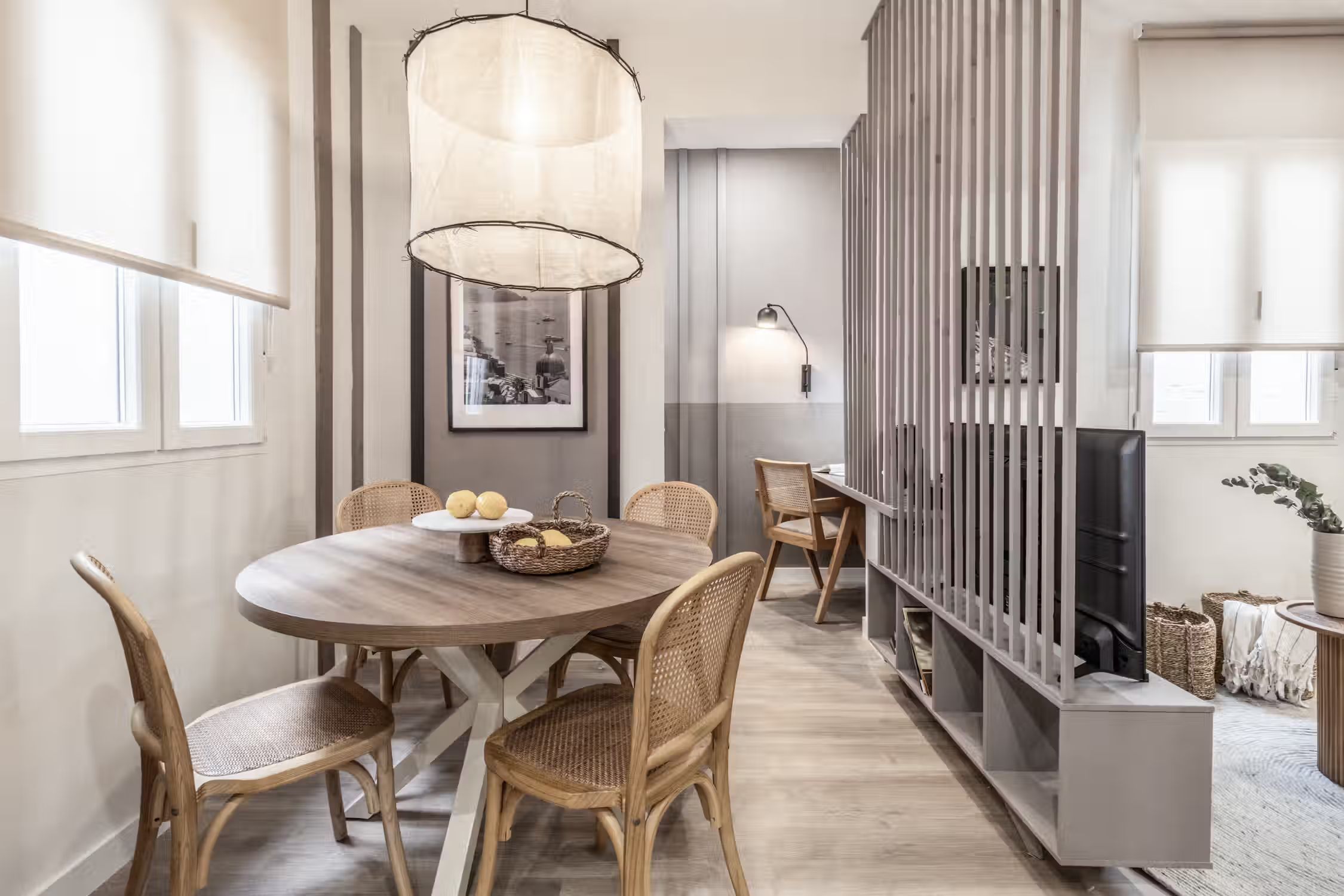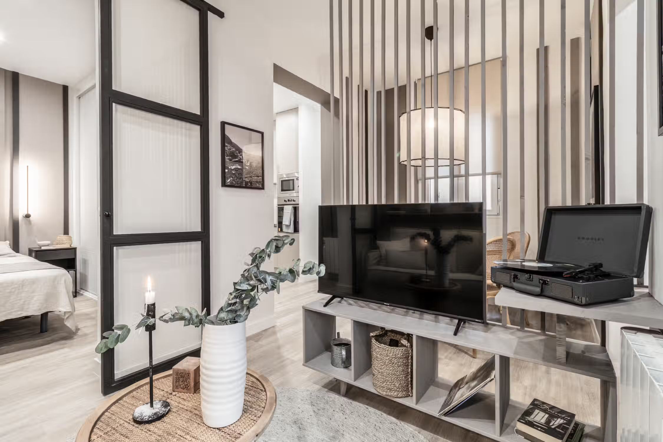 Discover Oro, a delightful retreat nestled in Castellana, offering a stylish beach-themed design for an invigorating stay. Upscale, residential, and business hub, if this sounds exciting to you, then this neighborhood is the place for you. Spanning 56 square meters, Oro provides a cozy and inviting ambiance, perfect for your urban getaway. Unwind in the bedroom, featuring a comfortable queen-size bed, ensuring a restful night's sleep. For additional guests, the living room contains a sofa bed for added convenience. The elegantly designed bathroom includes a convenient walk-in shower, providing a refreshing and luxurious bathing experience. The living room is a haven of comfort and convenience, complete with an entertainment system for your leisure, an adjacent dining table for shared meals, and a dedicated workstation for your productivity needs. The coastal neutrals and woven wood fixtures add to the beach theme of the apartment. Prepare delectable meals in the fully furnished kitchen, equipped with modern appliances and ample space to unleash your culinary creativity. Enjoy the cool comfort of air conditioning in the bedroom, ensuring the perfect indoor environment. Benefit from the added security and convenience of a doorman, providing a sense of safety and peace of mind throughout your stay. Fully furnished, this apartment comes with everything you need, including bedding and linens