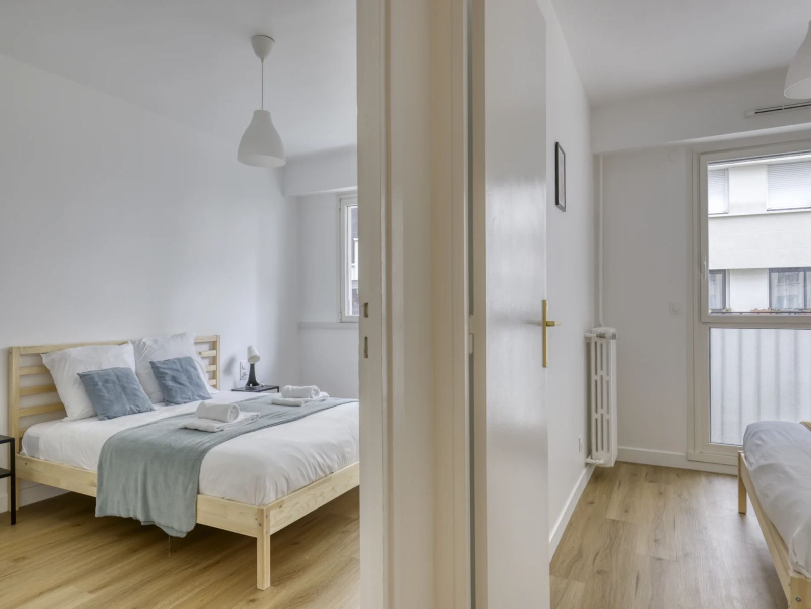Stunning and spacious apartment of 76 sqm in "La Butte aux Cailles" area, which can accommodate up to 4 guests.(Could be 5, thanks to the sofa bed). It is absolutely new, which is a wonderful chance to experience! It offers comfort conditions of high standard with its 2 bedrooms with double beds, 1 bathroom, 1 separate WC, a balcony its fully equipped kitchen. We have selected for you a premium bedding. - Prime Location - Spacious - Quiet, on a courtyard - Fully equipped (washing machine / dryer / dishwasher, stove and oven...) - 2nd floor with elevator