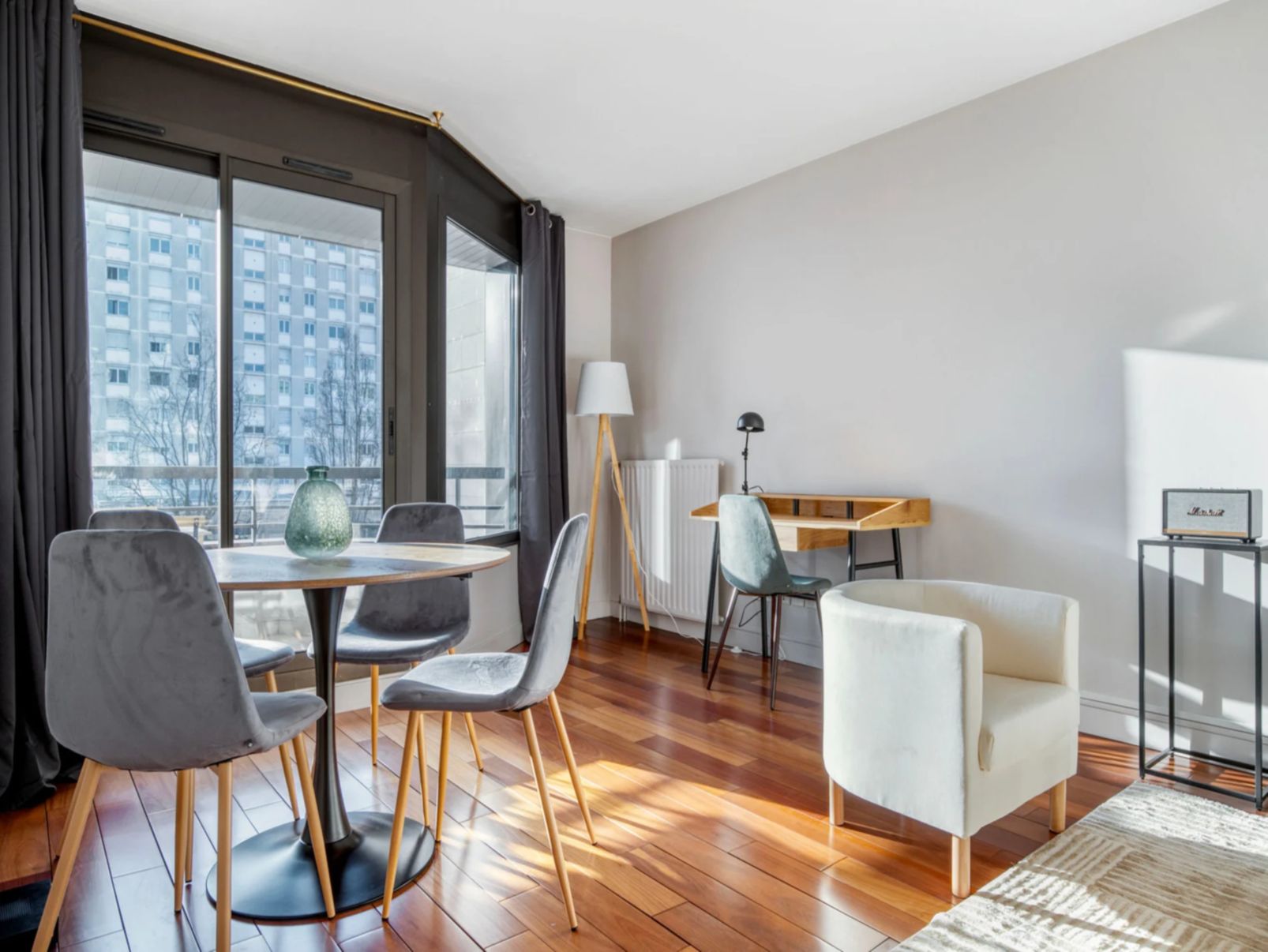 Discover the best of Paris, with this two-bedroom Pont de Neuilly apartment. It’ll be easy to simply show up and start living in this elegantly furnished apartment with its fully-equipped kitchen, charming living room, and our dedicated, on-the-ground support. In this apartment, you’ll find a thoughtfully designed space complete with beautiful furniture and a fully-equipped kitchen in this two-bedroom property. And, thanks to our superior quality mattresses, luxury linens, and towels, you can relax knowing you’ll always feel comfortably at home. When you’re ready for some fun, you can take in the Paris vibes or bring the entertainment to you with the premium wireless speaker or smart TV.
