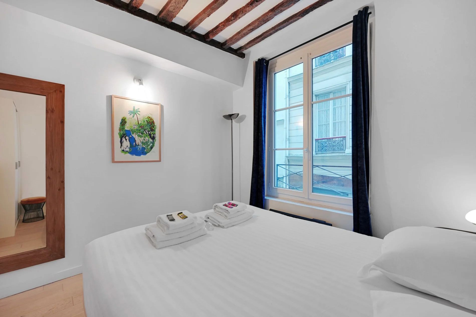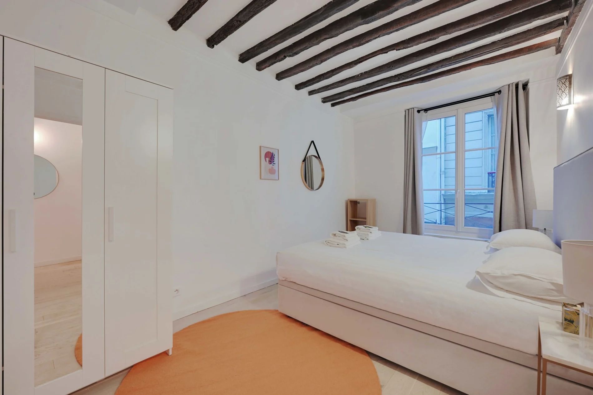 Apartment on the first floor, with a floor that gives access to the rest of the apartment. It is composed of: - An open kitchen, equipped and functional: fridge, stove, coffee machine, toaster, kettle, dishwasher, oven ... - A living space with a sofa bed and a TV - A first bedroom with a double bed - A second bedroom with a double bed - A bathroom with shower - Separate toilet - Storage space - TV and high speed internet Organized around the old Paris Stock Exchange, the 2nd arrondissement has expanded since the 16th century. A bourgeois district, where many banks settled after the construction of the Bourse, you will find beautiful architecture, especially in the Rue Réaumur, a symbol of 20th century architectural innovation. You will also find one of the 5 royal squares of Paris (and one of the least known): the Place des Victoires. A district at the crossroads between the Grands Boulevards and the Royal Paris of the Louvre. Not the most lively, but it offers many walks and discoveries, especially around the rue Montorgueil. Very central. The geographical situation of the apartment will allow you to move very easily and quickly in the whole of the capital via these many possibilities of public transport: - Metro: Bourse and Sentier (line 3), located at 4 minutes on foot - Metro : Grands Boulevards ( line 8 and 9 ), located at 5 minutes on foot - Numerous day & night bus lines - Velib station