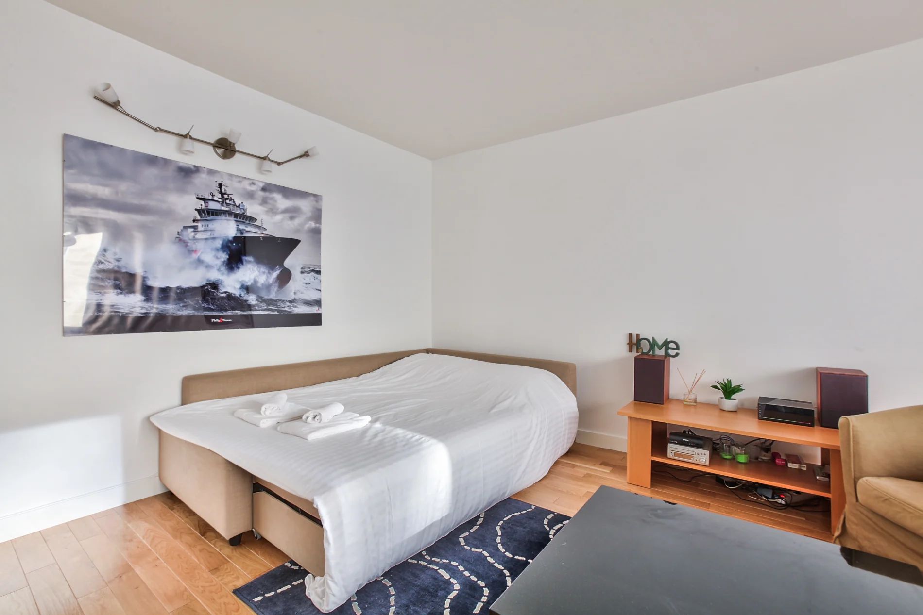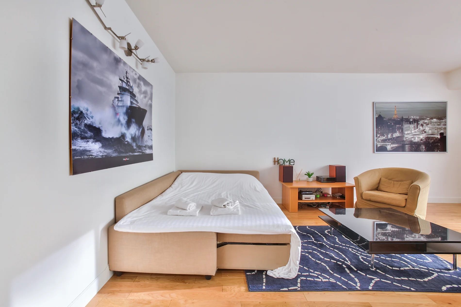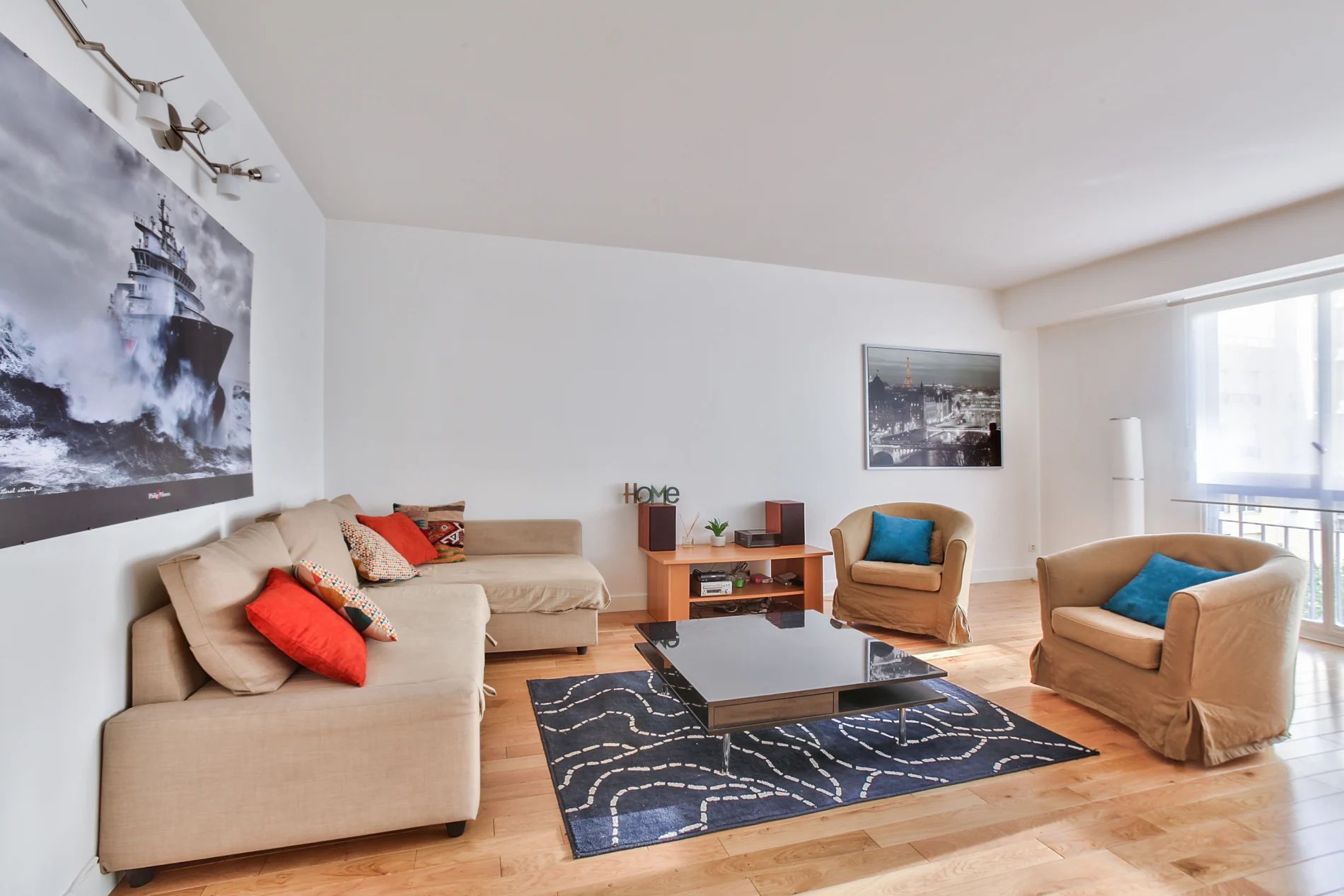 Located 10 minutes walk from the Porte de Versailles exhibition center, this very comfortable, quiet and bright apartment can accommodate up to 6 people. The living room is composed of a lounge area, a dining area and an open kitchen fully equipped with a hob, an oven, a toaster, a dishwasher, a refrigerator, coffee maker and plenty of storage compartments. Two bedrooms each with a double bed are at your disposal and the sofa bed in the living room can also be used as sleeping accommodation for two. The bathroom has a basin and a mirror, a bathtub, a washing machine and a toilet. Located in a shopping district and close to the Metro Convention, you can go directly to Saint Germain des Près, the Champs Elysées and the Galeries LaFayette.