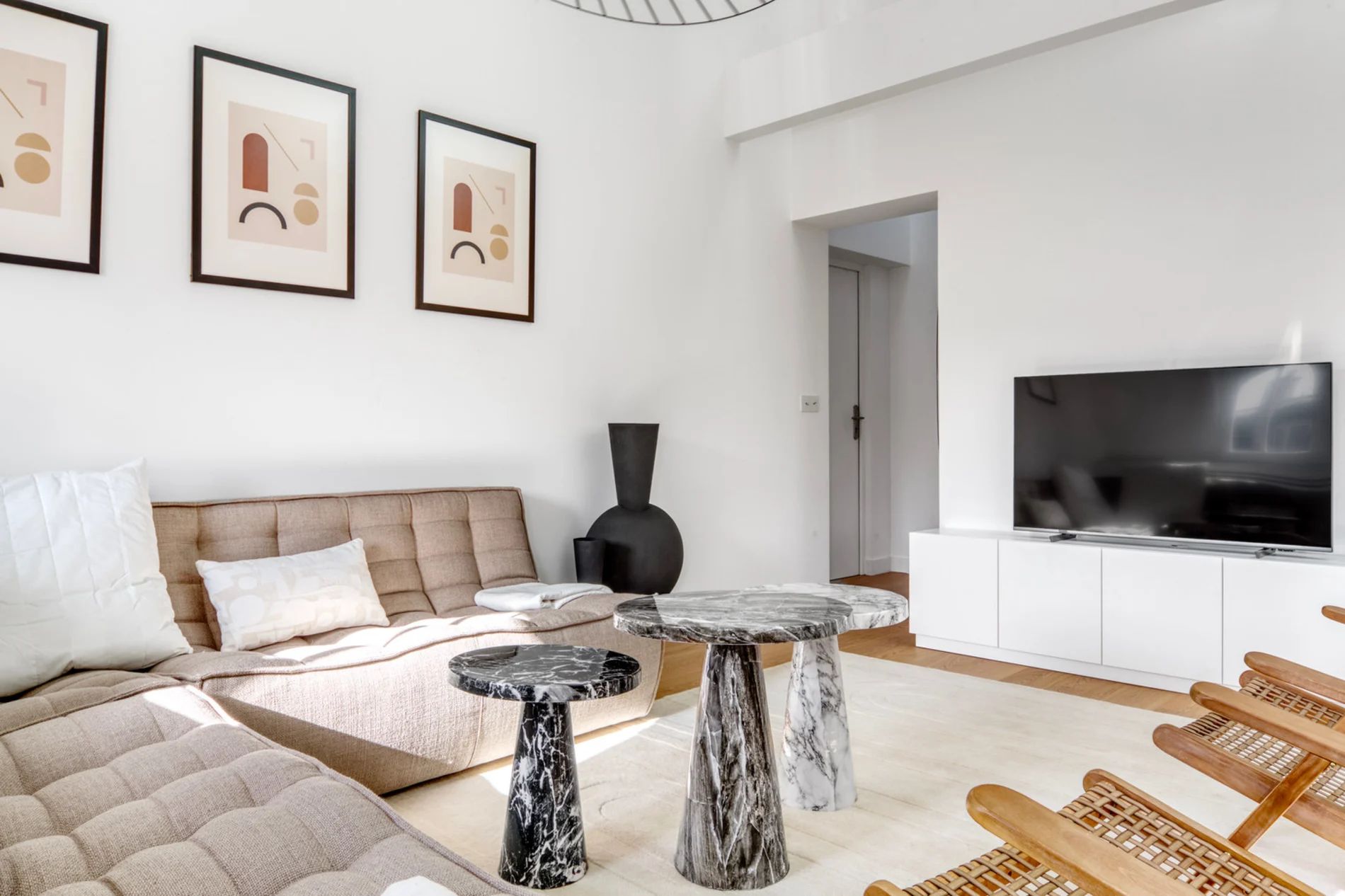 Gorgeous furniture, fully-equipped kitchen, smart TV, and a premium wireless speaker are just a few of the amenities you’ll find inside this two-bedroom apartment. Ideally located in Paris, you’ll find a lot to love outside as well. When you’re ready to relax, you’ll be happy to discover every bedroom comes with superior quality mattresses. We handle everything so you can simply show up and start living. This apartment also offers in-apartment laundry