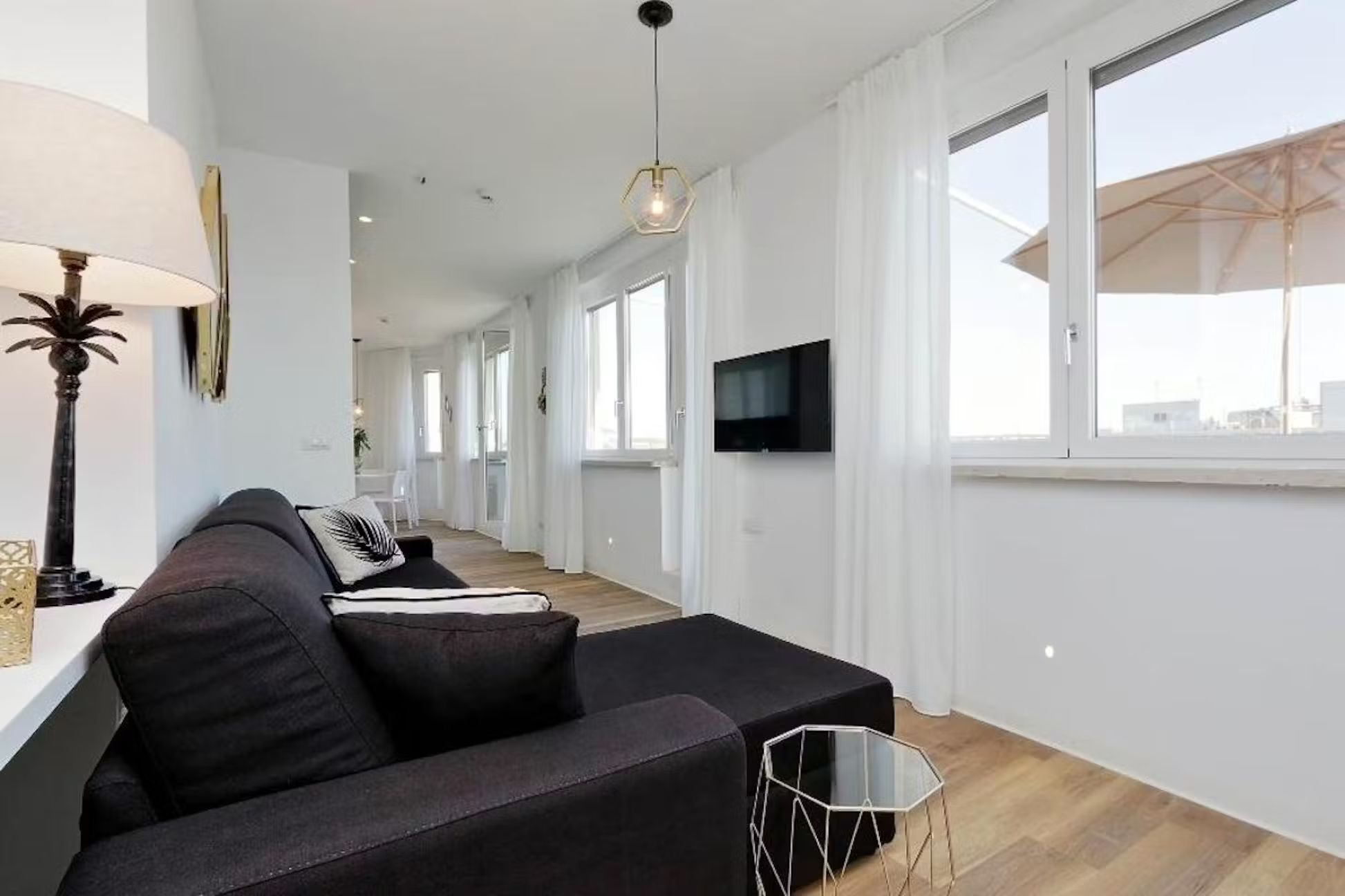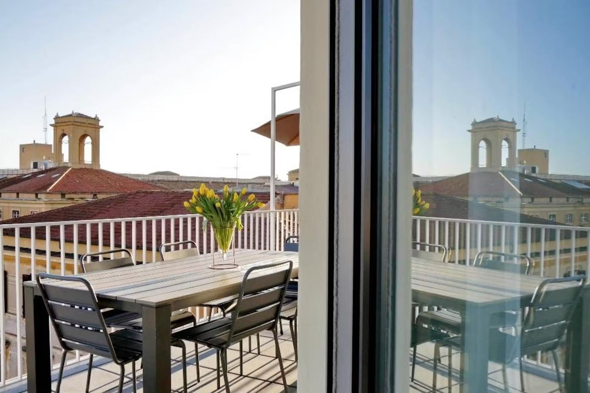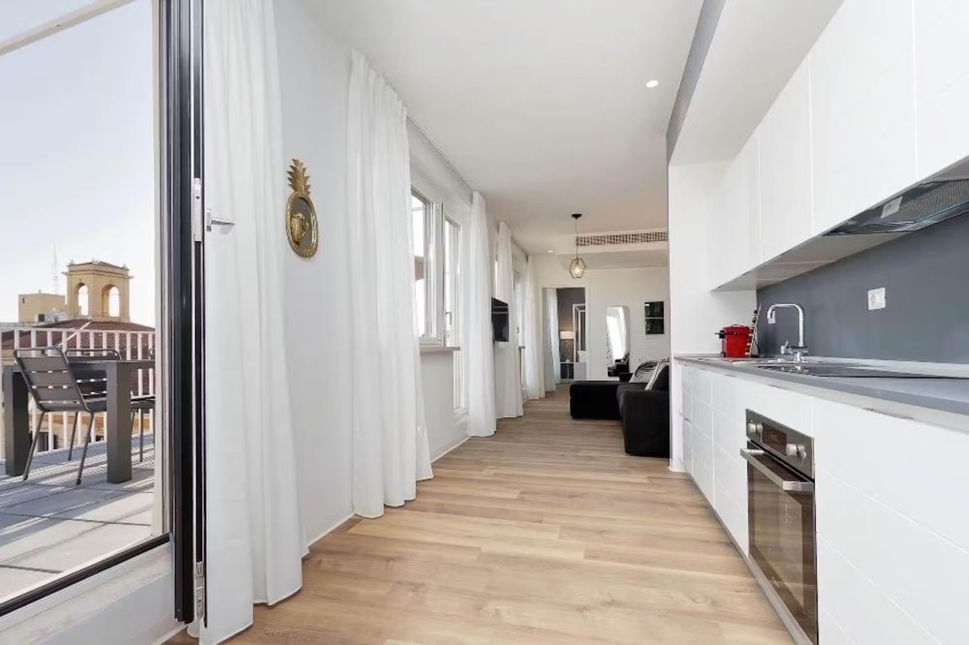 Welcome to this charming and practical three-room apartment with a terrace, perfectly situated in the heart of the lively Sallustiano district, right next to the picturesque Trevi area. With Termini station, Via Veneto, Piazza Barberini, and the Rome Opera House just a 10-minute walk away, and Metro A, Repubblica, and Termini stations only 800 meters away, you’re ideally positioned to explore all that Rome has to offer. Enter to find a spacious living area with a magnificent window that opens onto the terrace, blending indoor and outdoor living beautifully. The terrace, outfitted with a table, chairs, deck chairs, sofa, and umbrella, is perfect for alfresco dining or simply enjoying the breathtaking views. Inside, the living room features a comfy sofa bed and a wall-mounted TV, while the open kitchen is fully equipped with modern appliances including a refrigerator, dishwasher, oven, induction hob, microwave, toaster, electric kettle, and a Nespresso coffee machine, plus cutlery and crockery for six. A stylish dining table with six chairs completes the space To the right of the living room, you’ll find a bedroom with an en suite bathroom, featuring a cozy French double bed, a bedside table, and a spacious wardrobe. On the opposite side of the dining area is the second bedroom, with a luxurious double bed, an inviting armchair, a wall-mounted TV, and ample storage in a large wardrobe. Both bathrooms are equipped with modern fittings and a convenient shower cabin Parking: Nearby, you’ll find both paid parking lots (marked with blue lines) and free parking spaces (marked with white lines) for your convenience