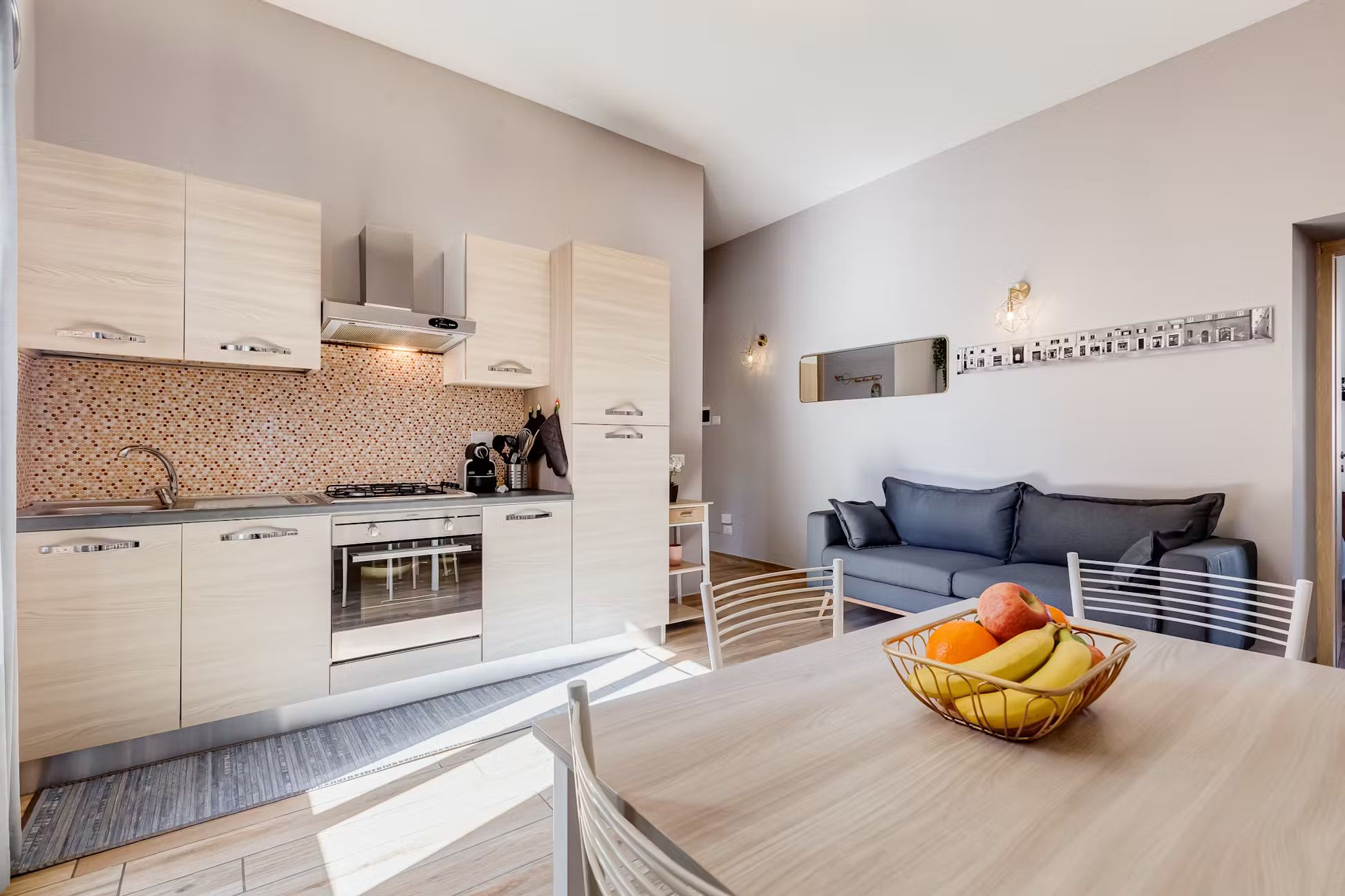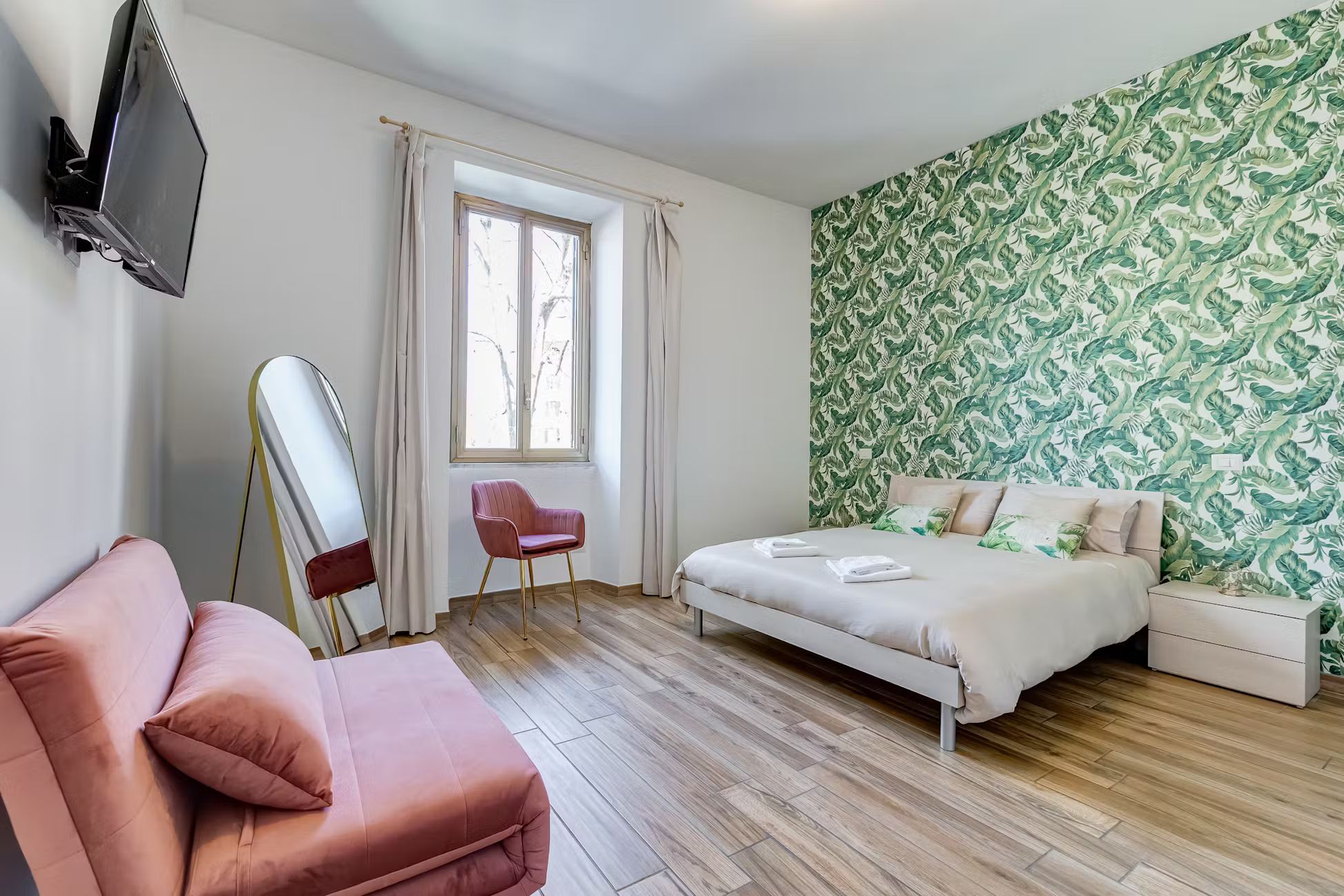 Welcome to our cozy vacation rental located in the heart of Rome! Our lovely apartment features 2 comfortable bedrooms, which can accommodate up to 5 guests, making it the perfect choice for families or groups of friends traveling together. Inside, you'll find a warm and inviting living area with an open-concept kitchenette, where you can prepare your favorite meals while chatting with your loved ones. The living room also offers plenty of space to relax after a long day of sightseeing, with comfortable seating and a flat-screen TV for your entertainment. The apartment has one bathroom with all the necessary amenities, including a shower, sink, and toilet. Plus, we provide fresh towels and linens for your convenience, so you don't have to worry about a thing during your stay. Outside, you'll be in the heart of one of Rome's most vibrant neighborhoods, with plenty of restaurants, bars, and shops just a stone's throw away. You'll also be within walking distance of some of the city's most famous attractions, including the Vatican City, Castel Sant'Angelo, and Piazza Navona